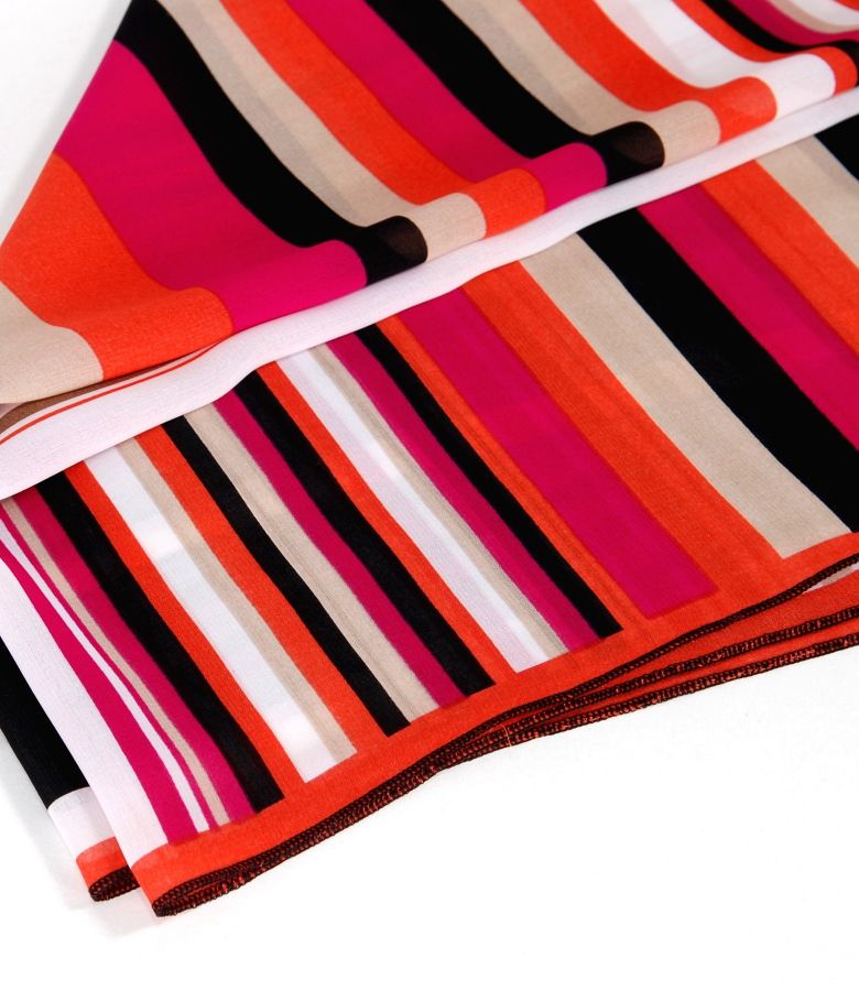 Batic din voal imprimat, de forma dreptunghiulara, finisat la masina speciala.