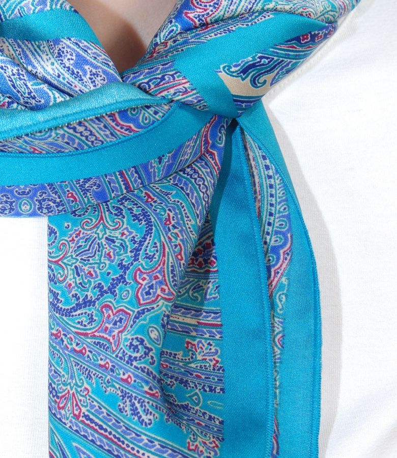 Batic din voal imprimat satinat, finisat la masina speciala.