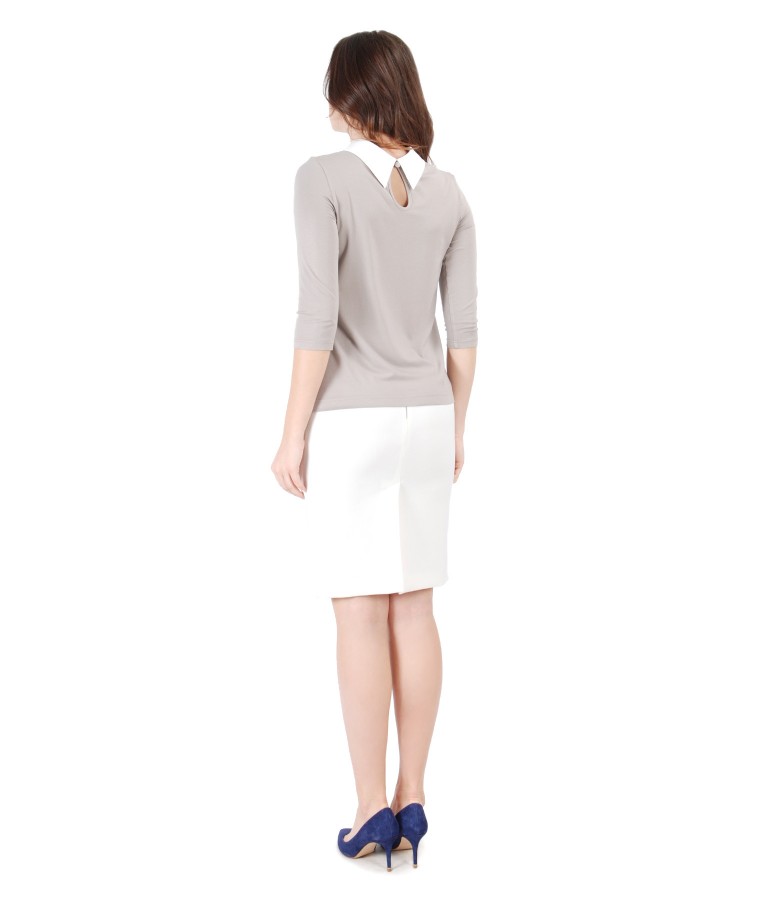 Bluza cu aplicatie de cristale si fusta creion