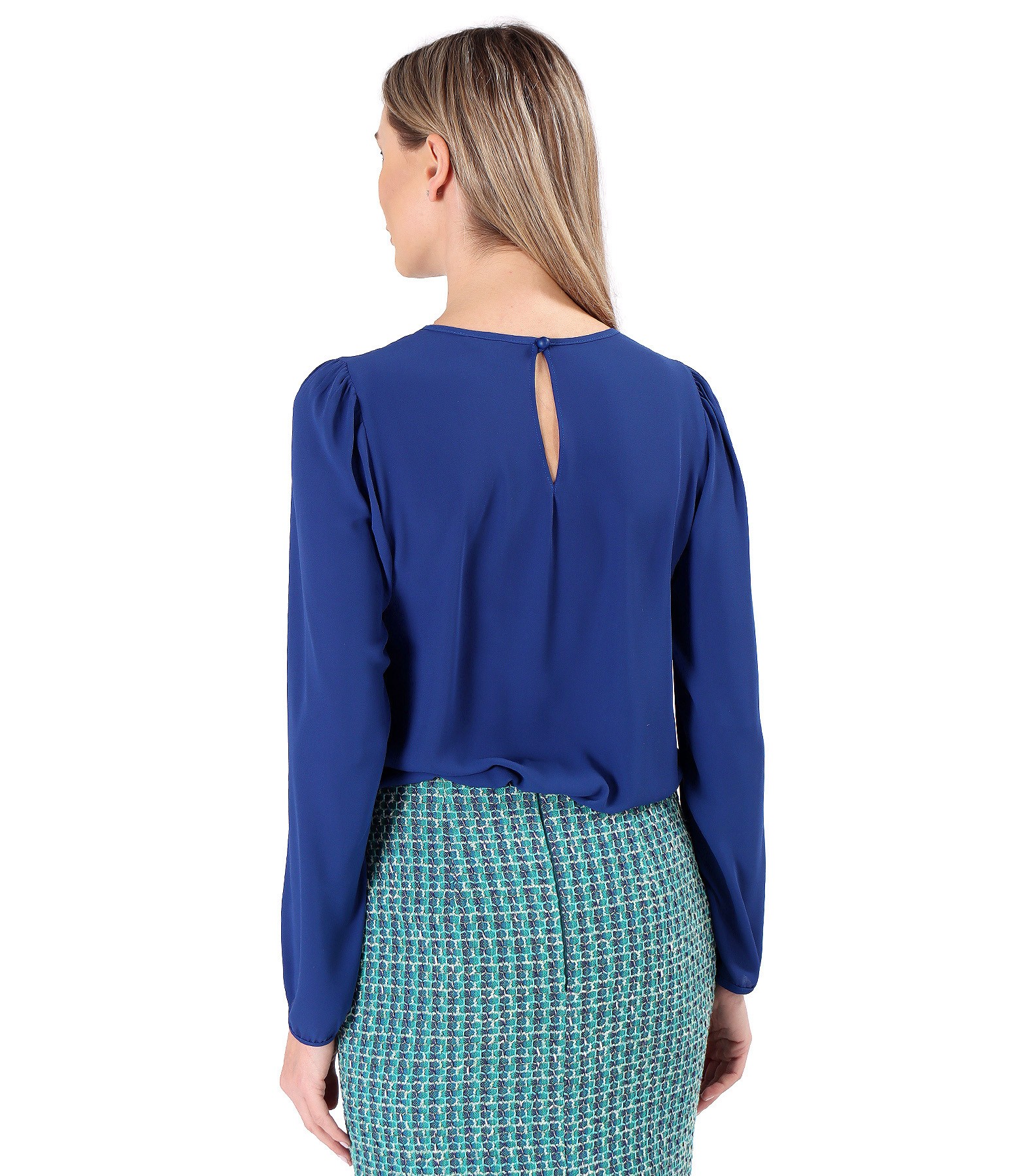 Bluza cu falduri la decolteu aplicatie de cristale (Albastru Royal), marimea