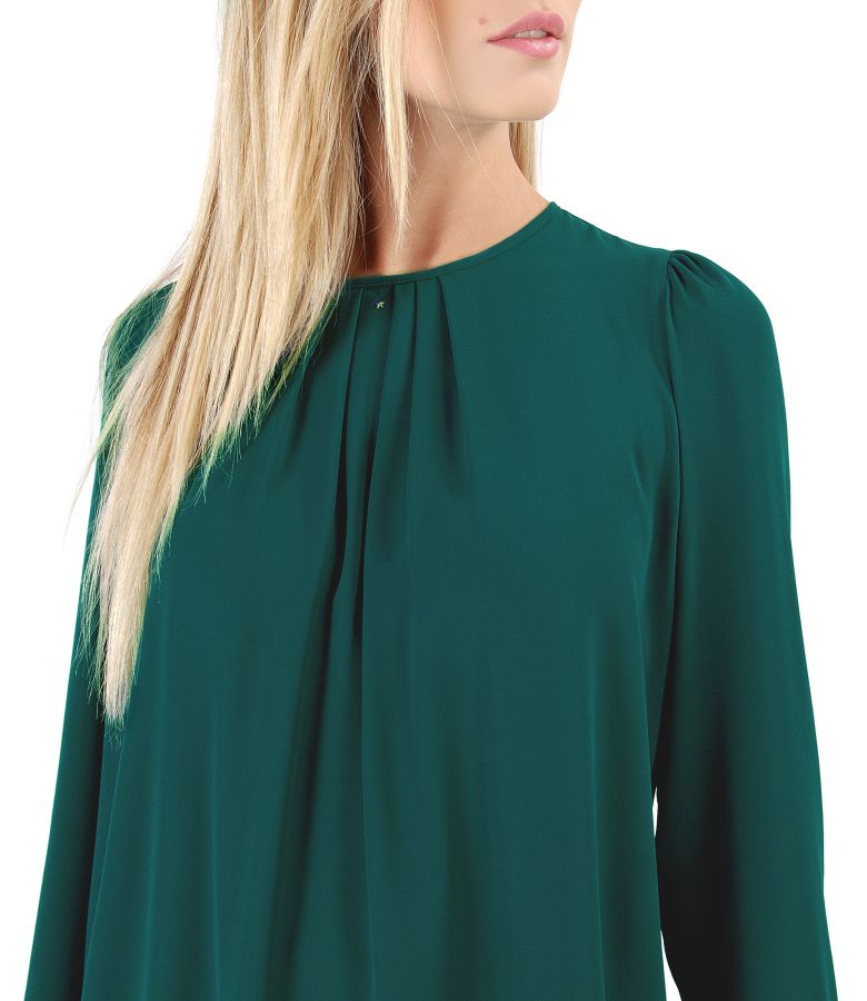 Bluza cu falduri la decolteu aplicatie de cristale (verde smarald), marimea