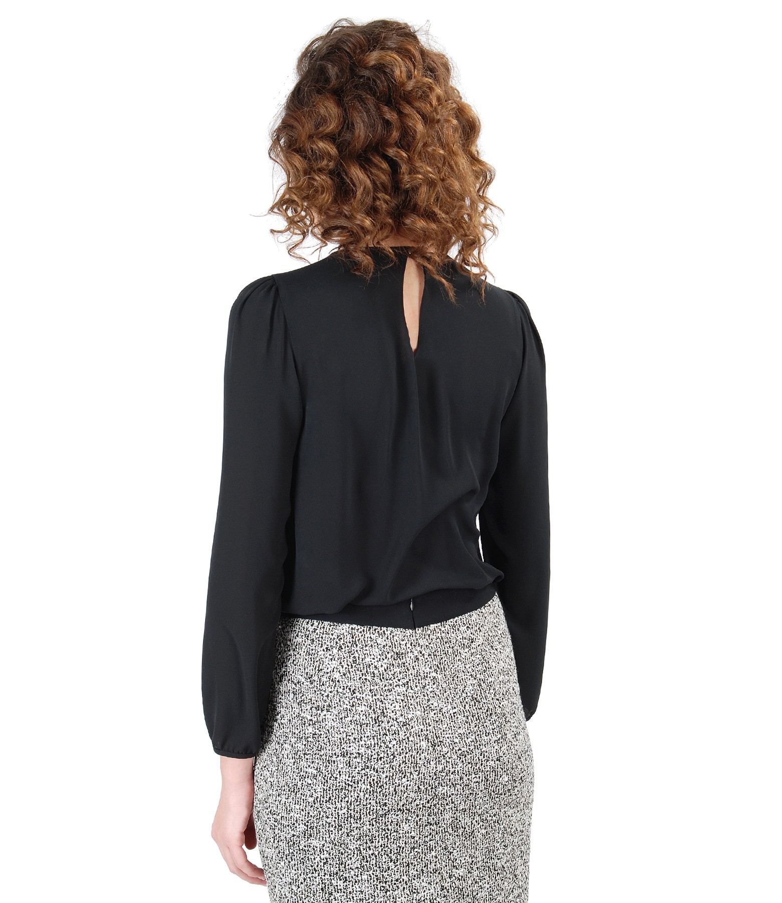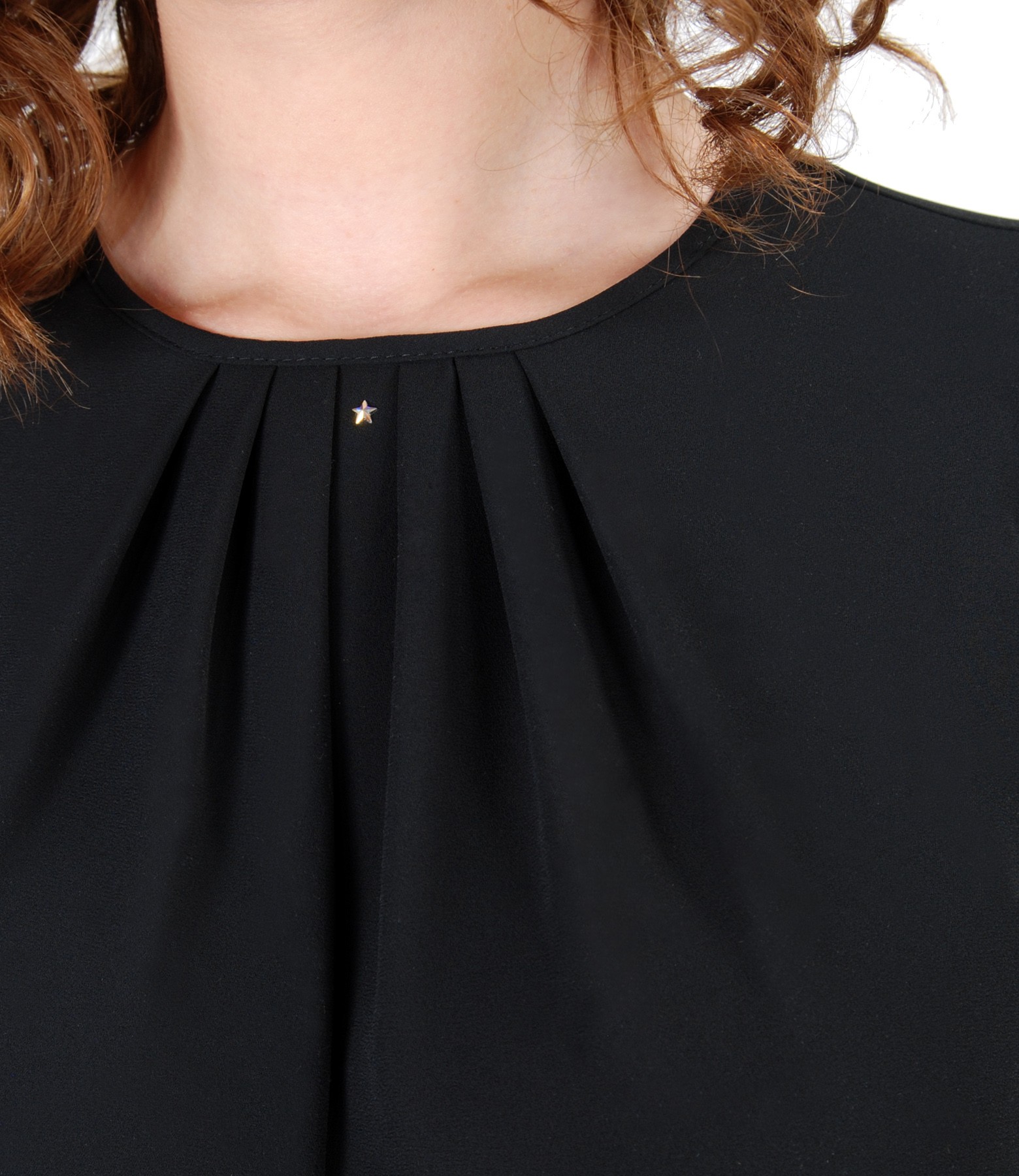 Bluza cu falduri la decolteu aplicatie de cristale (Negru), marimea