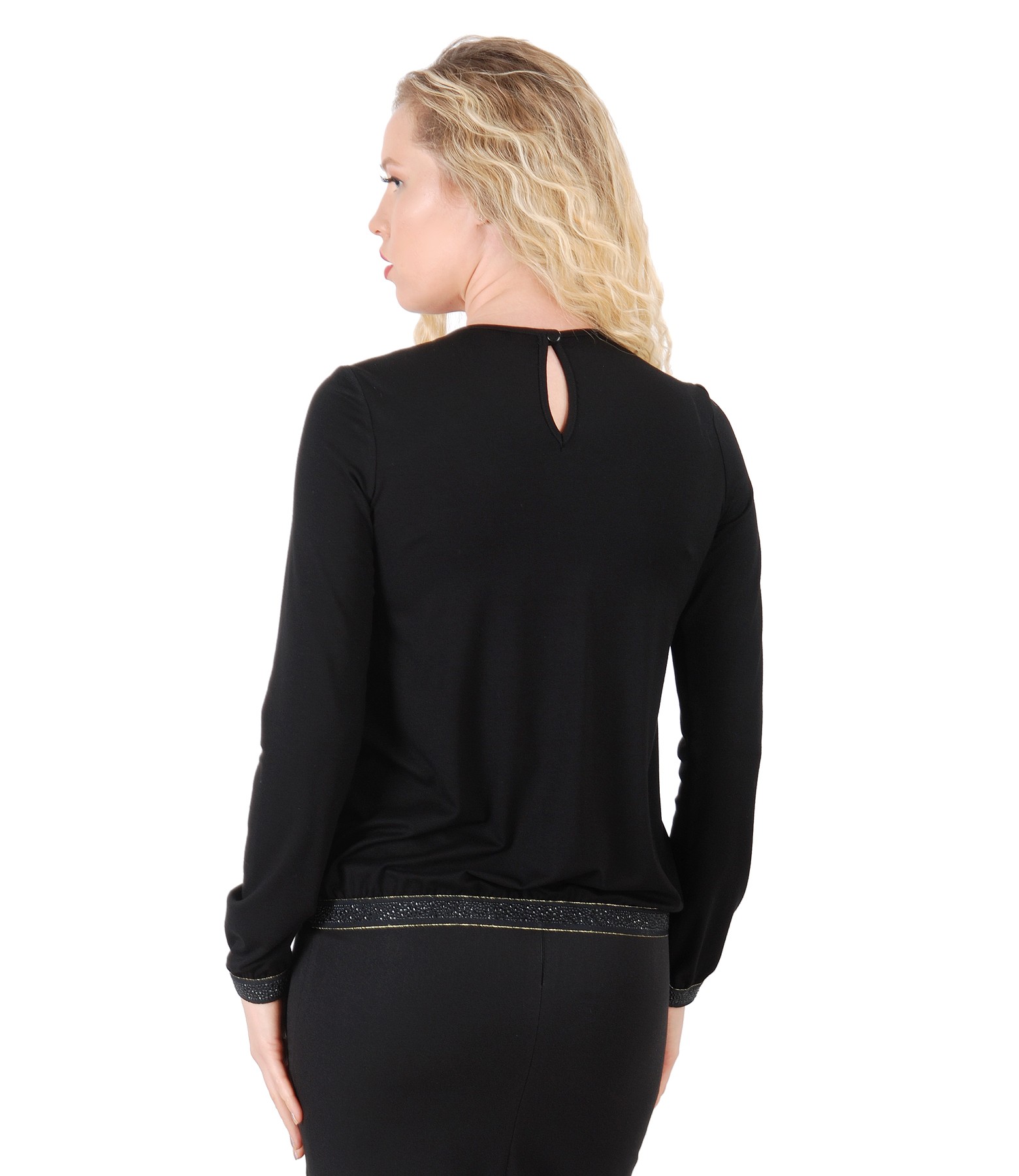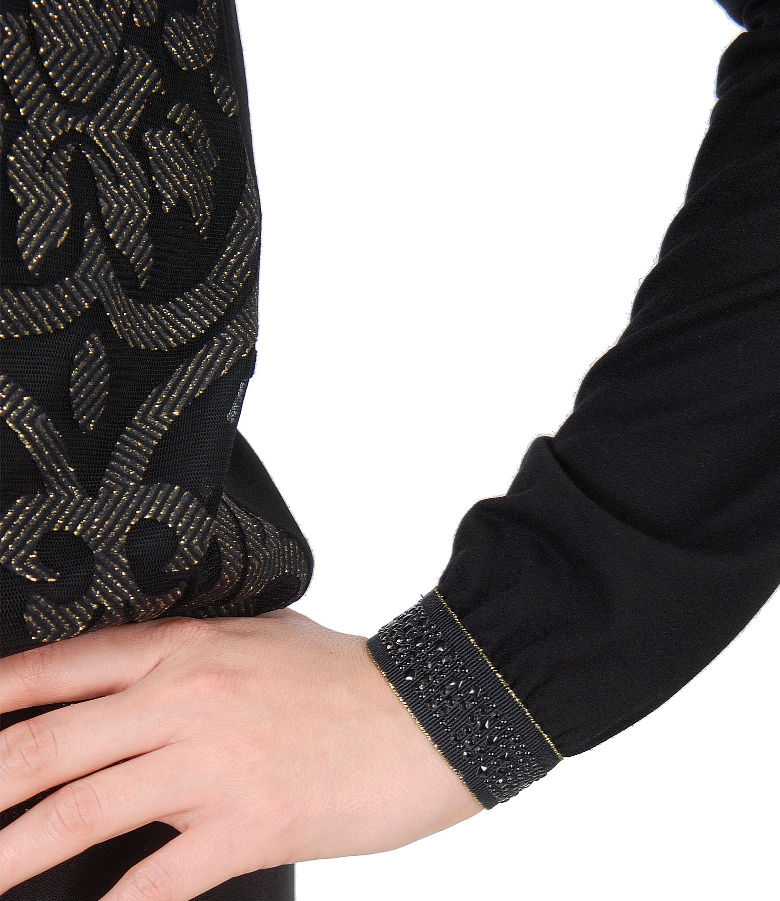 Bluza cu fata din dantela cu motive aurii (Negru), marimea