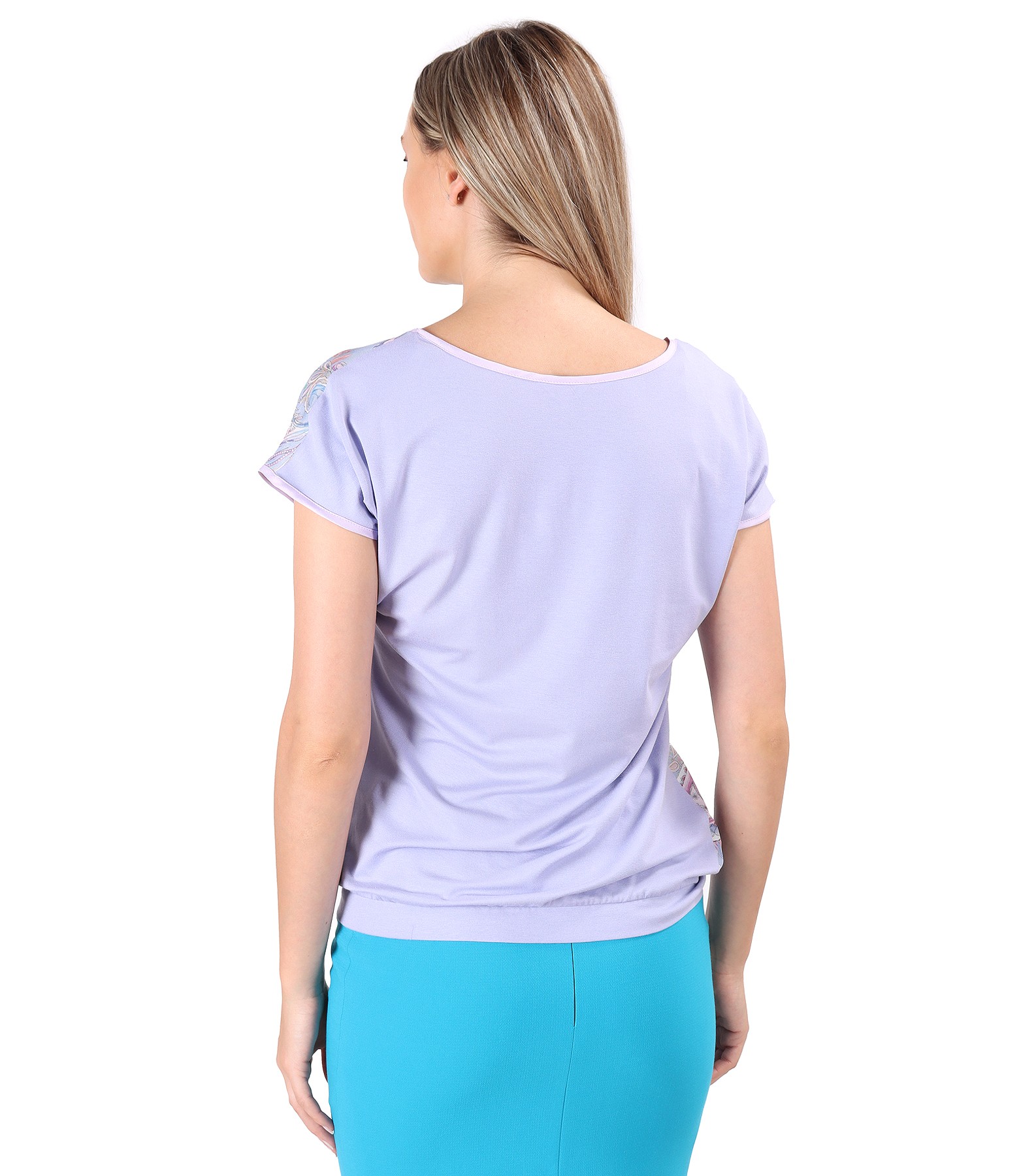 Bluza cu fata din serj de viscoza imprimata cu motive paisley (Lila), marimea