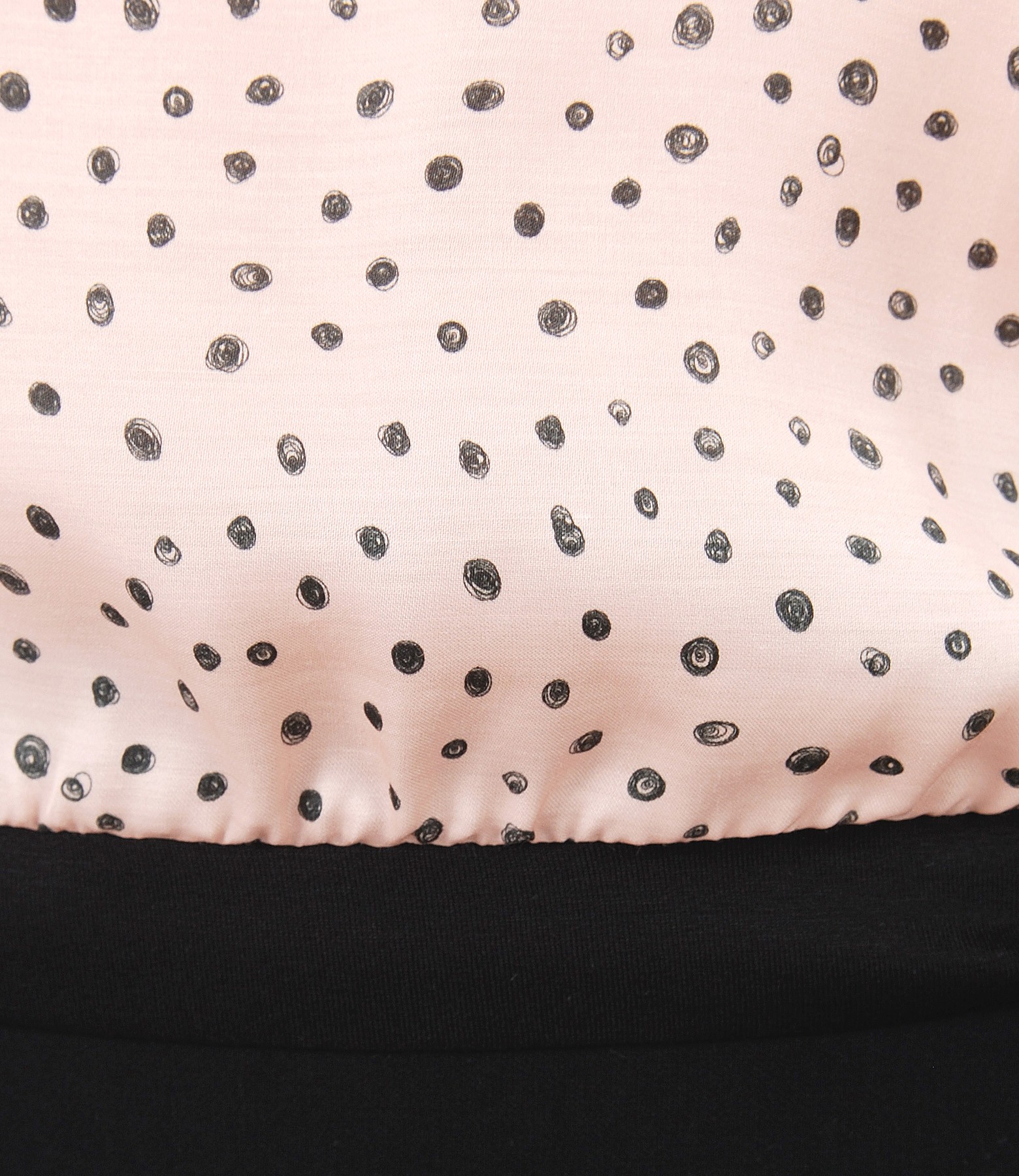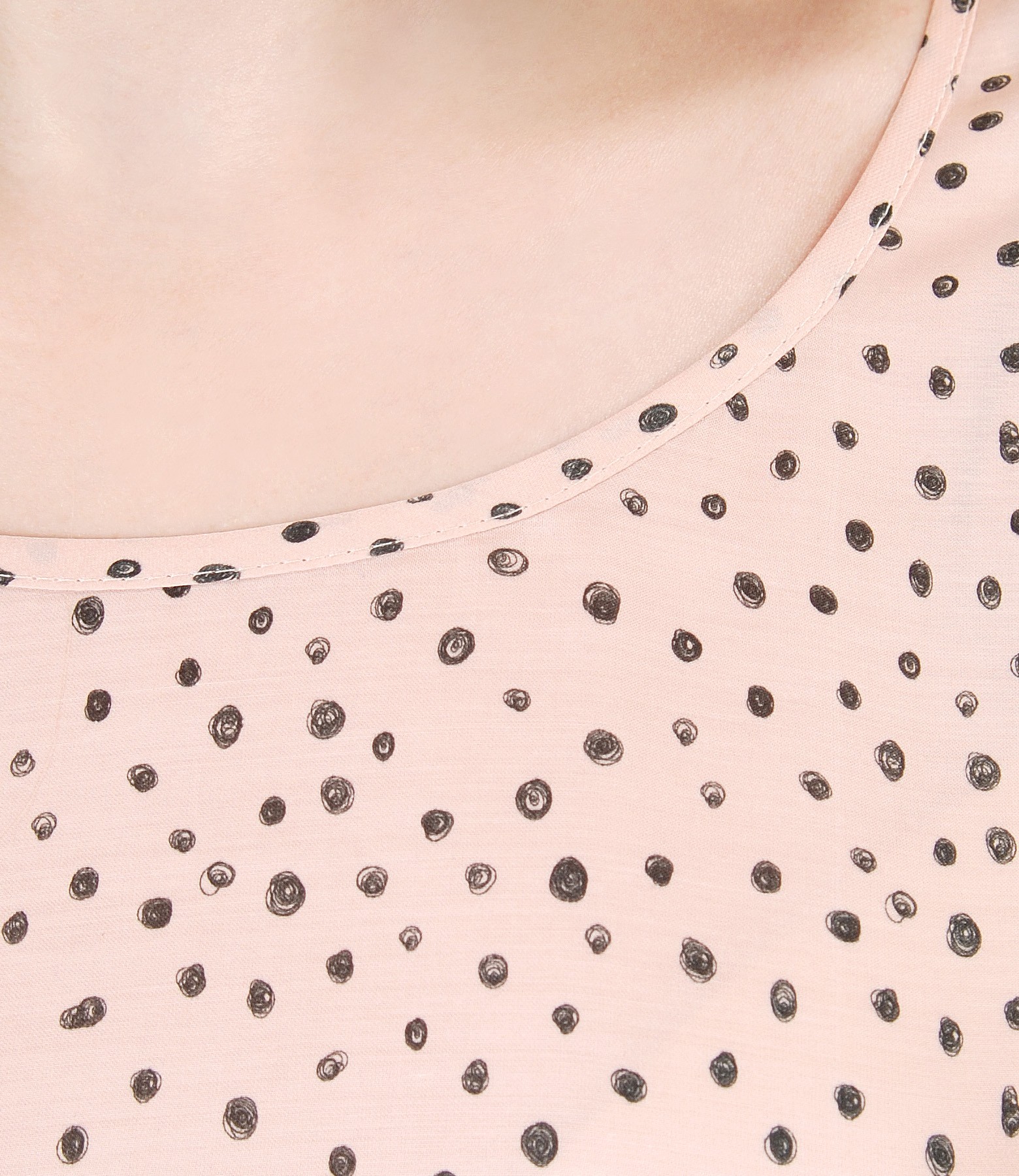 Bluza cu fata din viscoza cu imprimeu geometric, imprimat digital, spate din viscoza uni, cu decolteu rotund si garnitura la terminatii. Nu are sistem de inchidere.