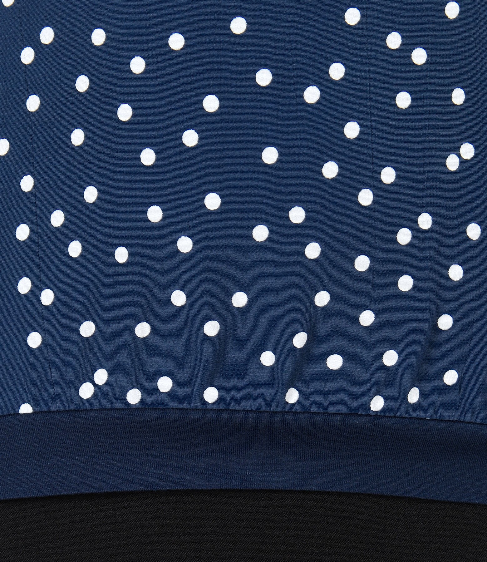 Bluza din jerse elastic, cu fata din viscoza imprimata cu picouri, cu decolteu rotund si maneci cazute.