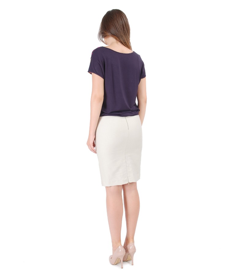 Bluza cu fata din viscoza imprimata si fusta conica din bumbac