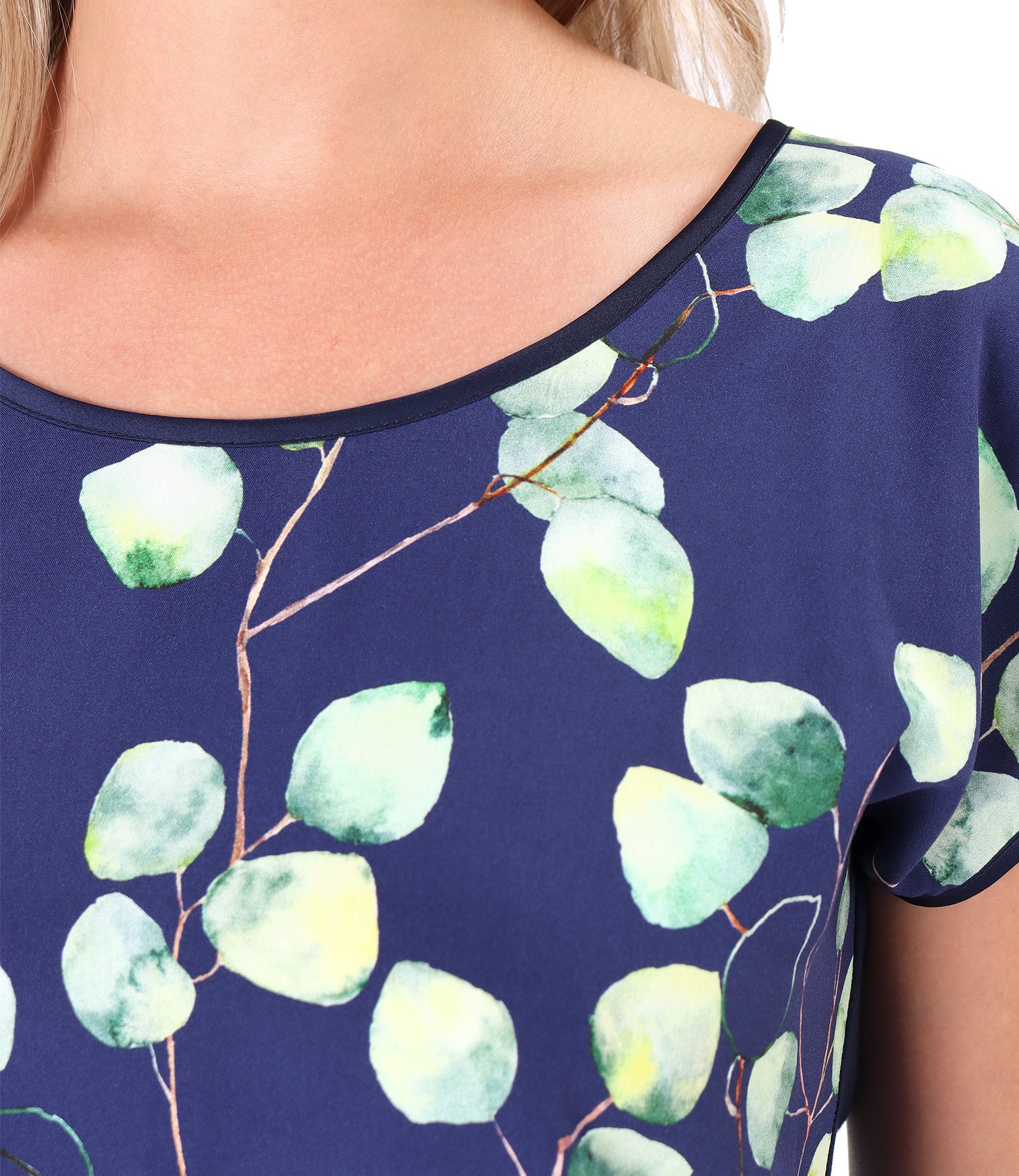 Bluza cu fata din viscoza imprimata digital cu flori (Bleumarin), marimea