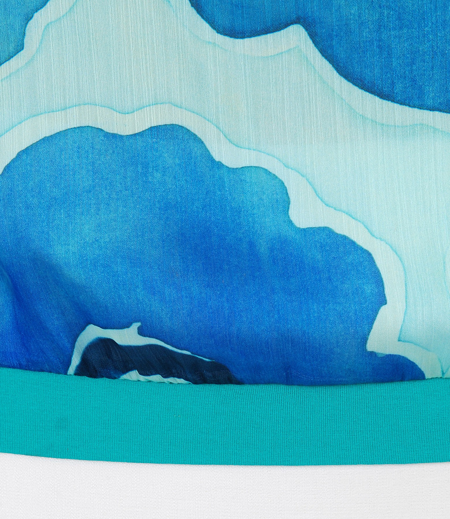 Bluza din jerse elastic, cu fata din voal impimat digital cu motive florale, cu decolteu rotund si maneci cazute.