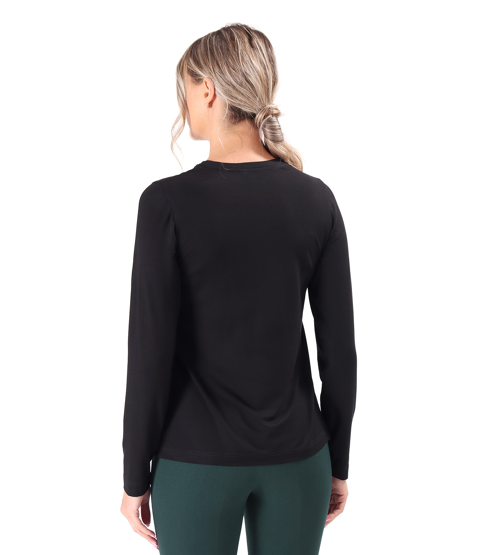 Bluza cu maneci lungi din jerse elastic uni (Negru), marimea