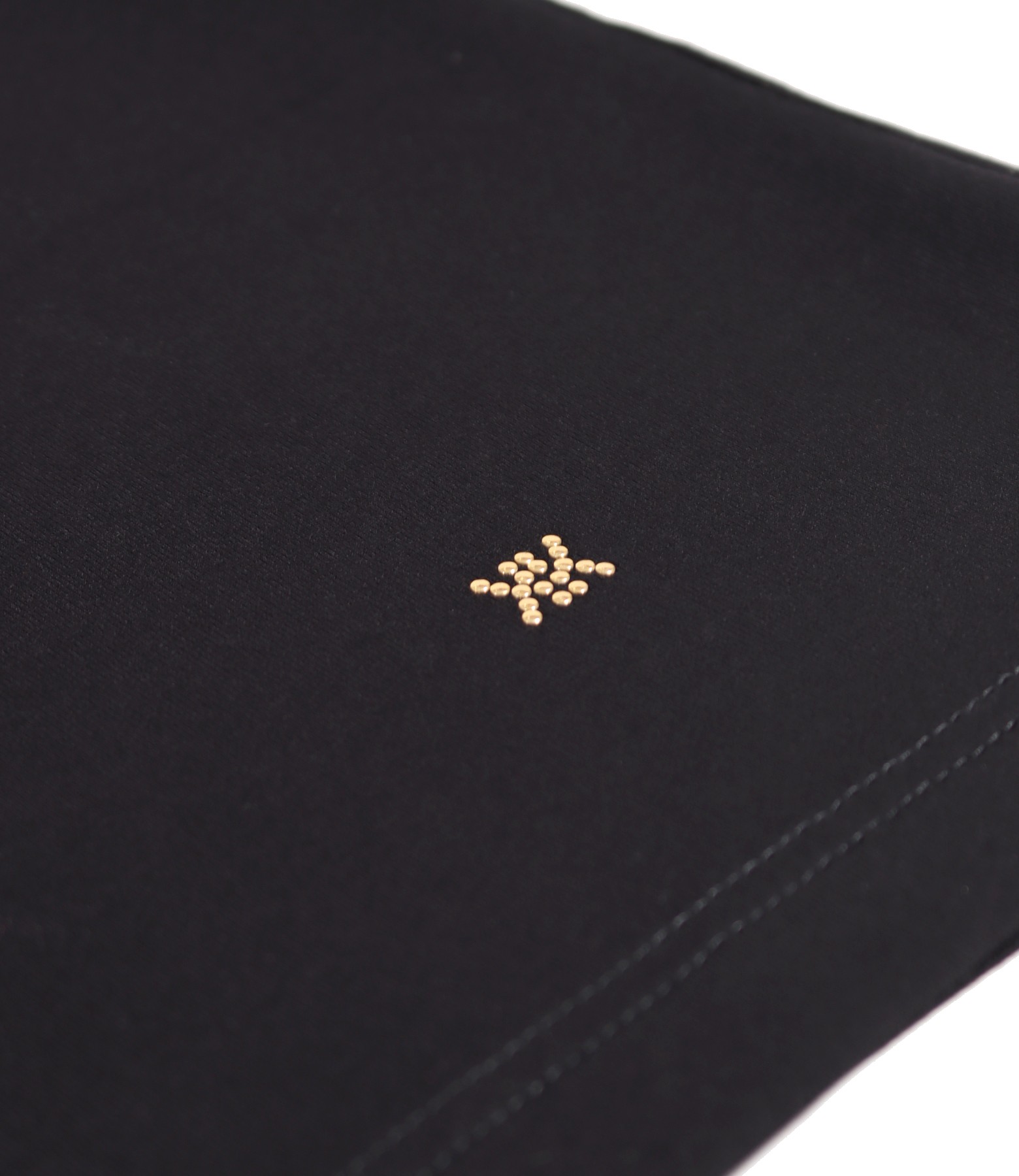Bluza cu maneci lungi din jerse elastic uni, cu decolteu rotund cu garnitura din elastic auriu.