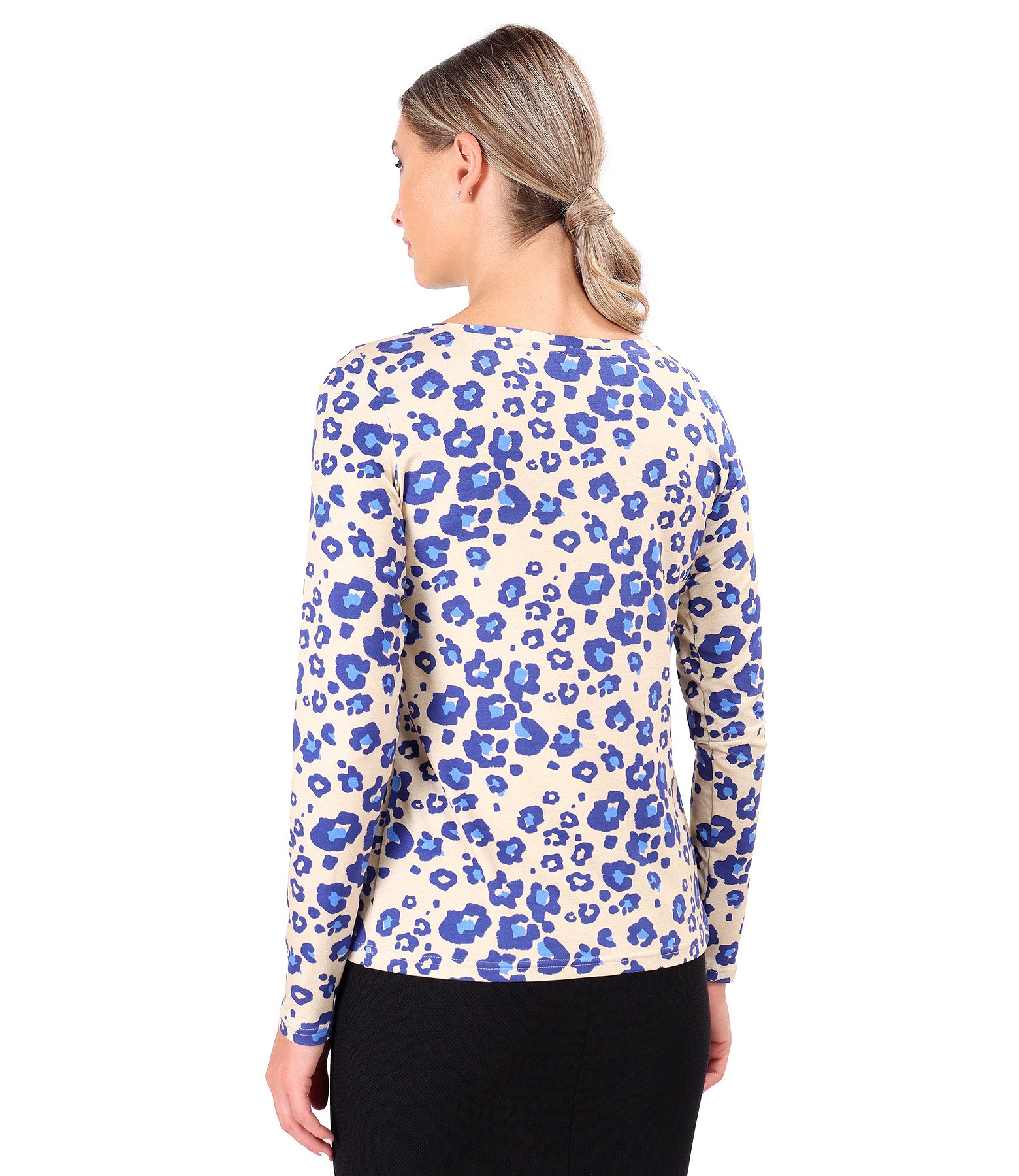 Bluza din jerse elastic din viscoza imprimata, cu decolteu rotund si maneci lungi.