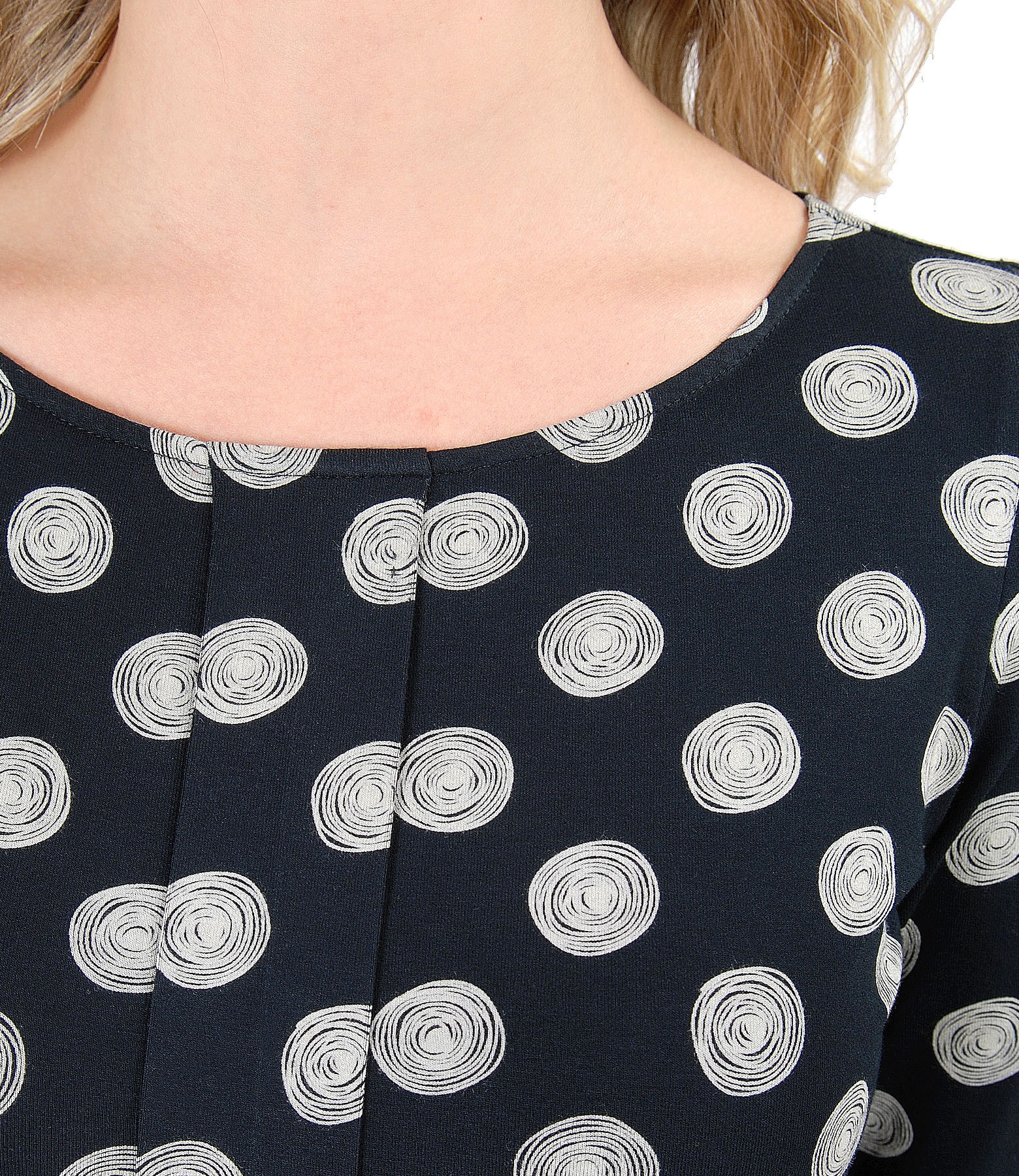 Bluza din jerse elastic imprimat, cu maneci lungi, decolteu rotund si fald pe fata.