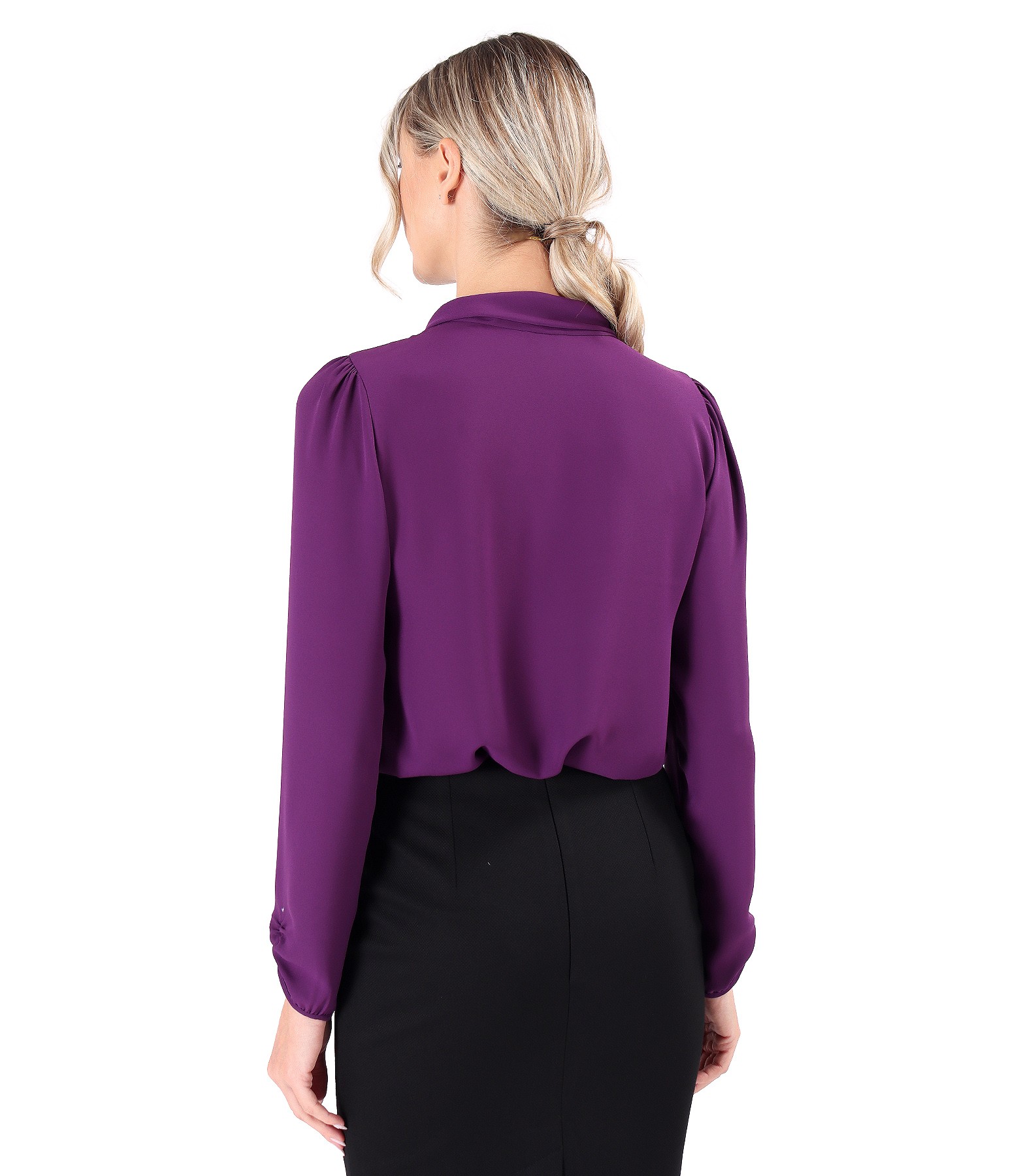 Bluza cu maneci lungi si guler tip esarfa (Mov), marimea