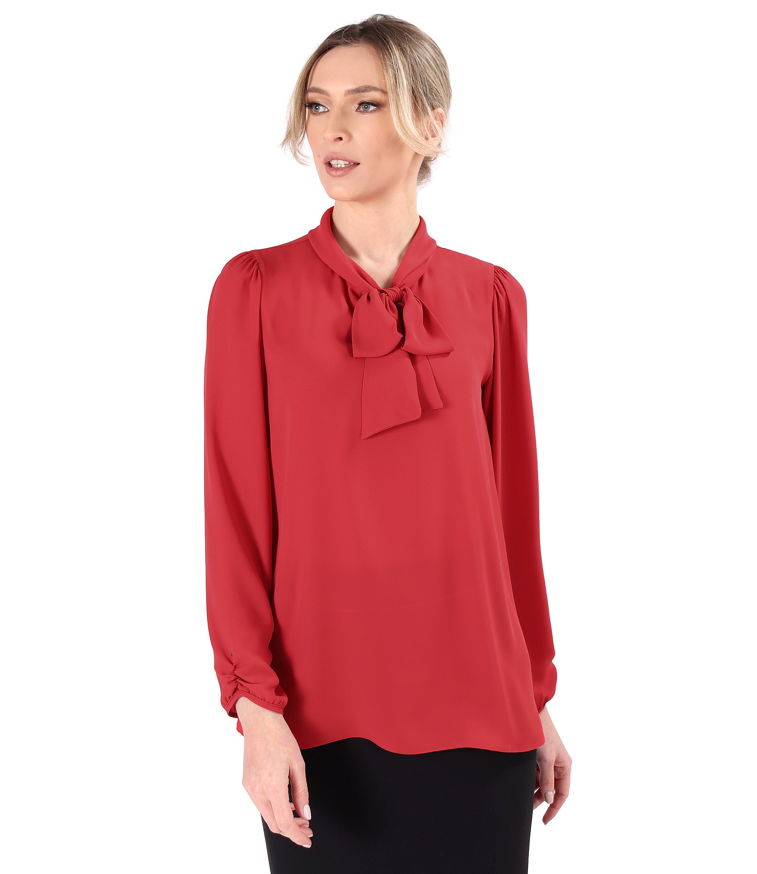 Bluza cu maneci lungi si guler tip esarfa (Rosu), marimea