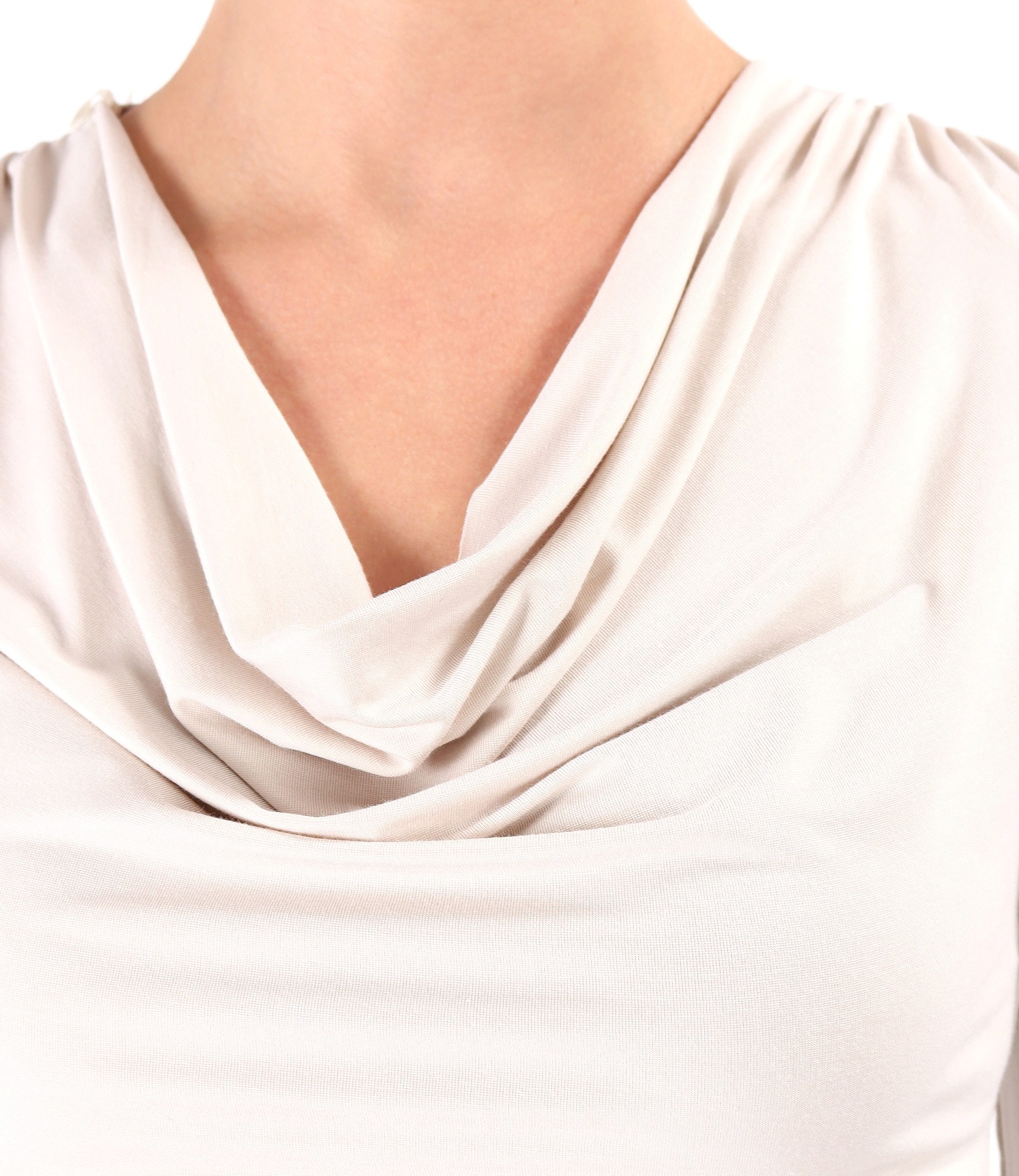 Bluza din jerse elastic cu viscoza, cambrata, cu maneci 3/4 si decolteu in falduri.
