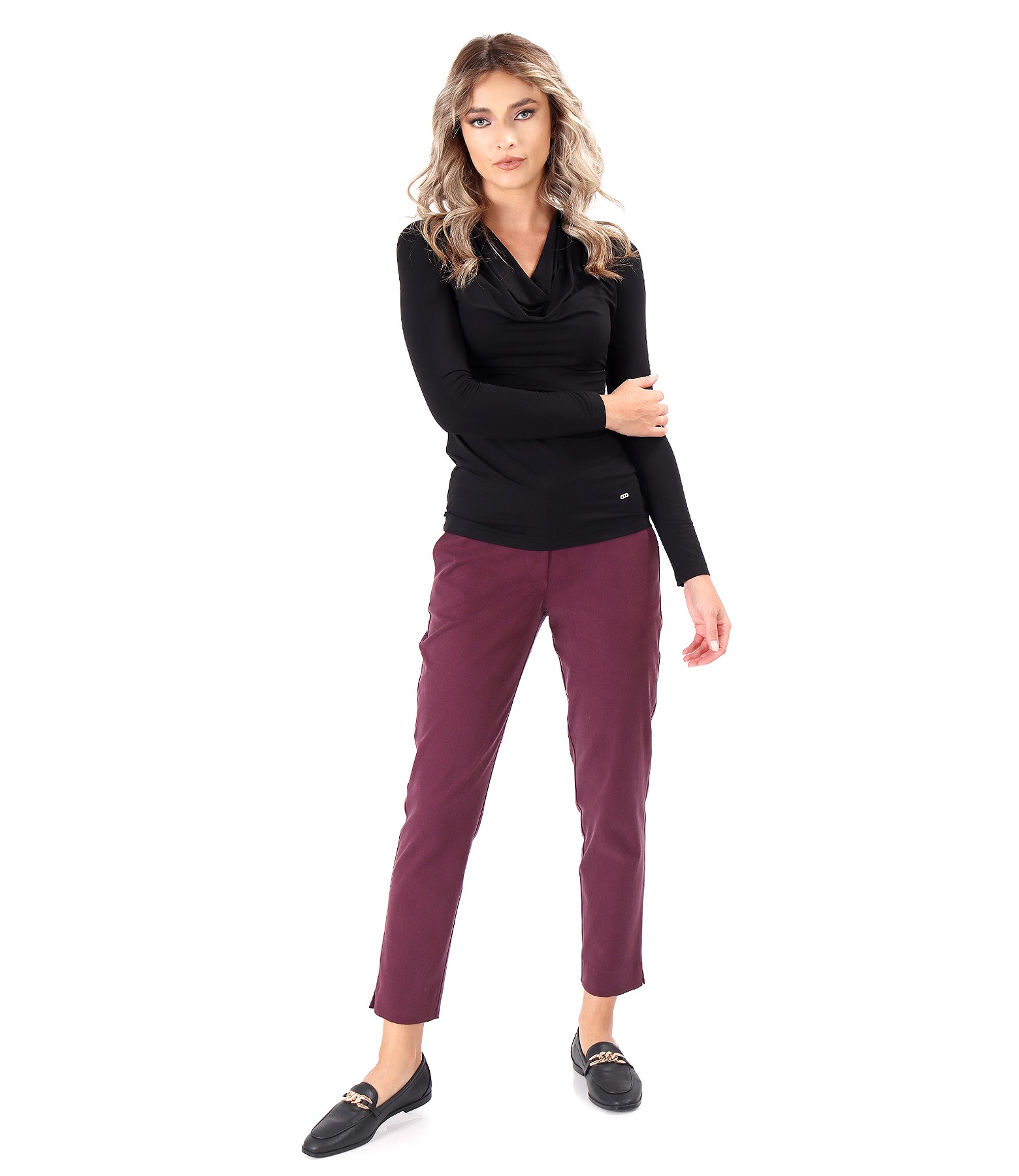 Bluza din jerse elastic cu decolteu in falduri (Negru), marimea