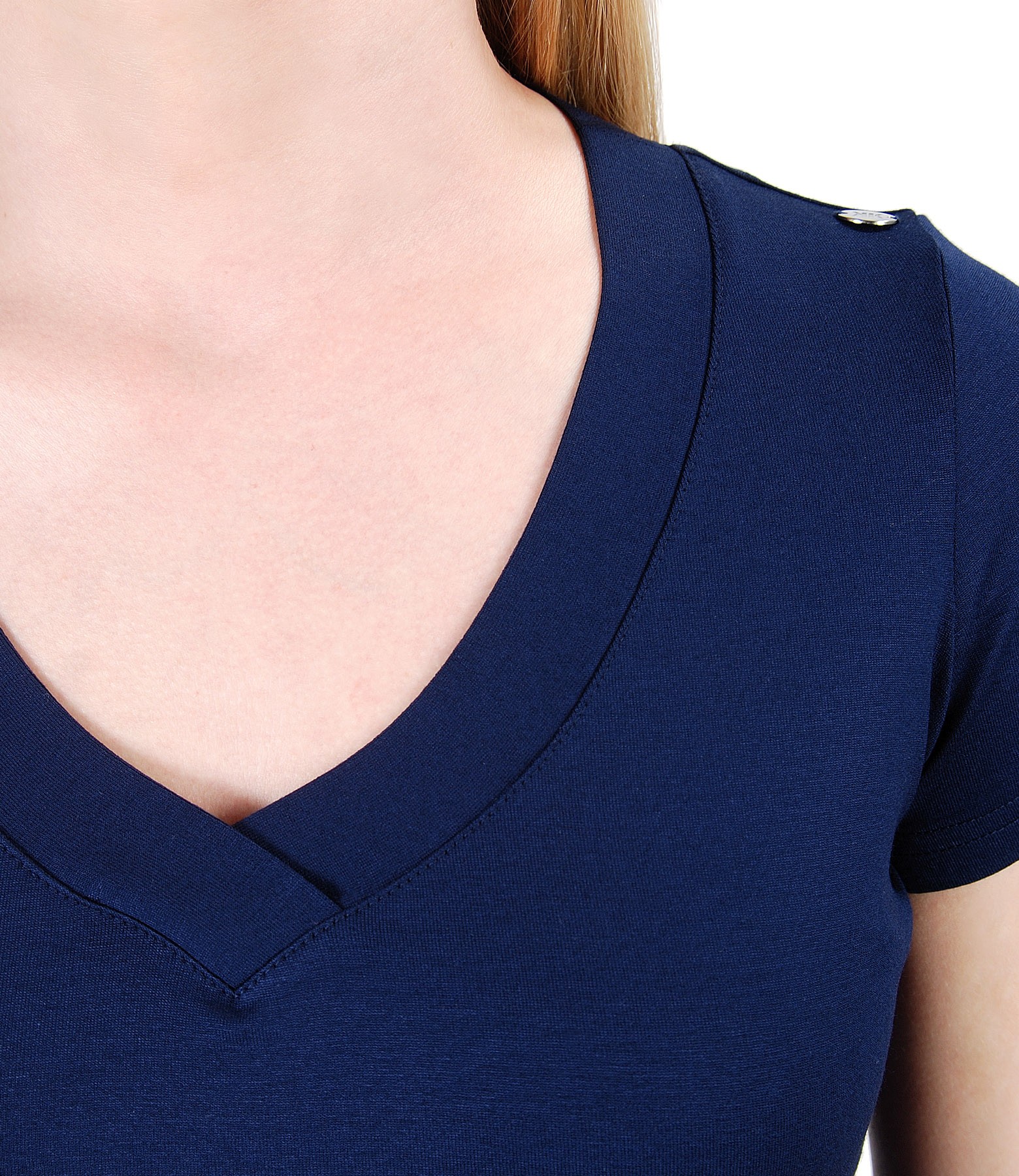 Bluza din jerse elastic cu decolteu in V (Bleumarin), marimea