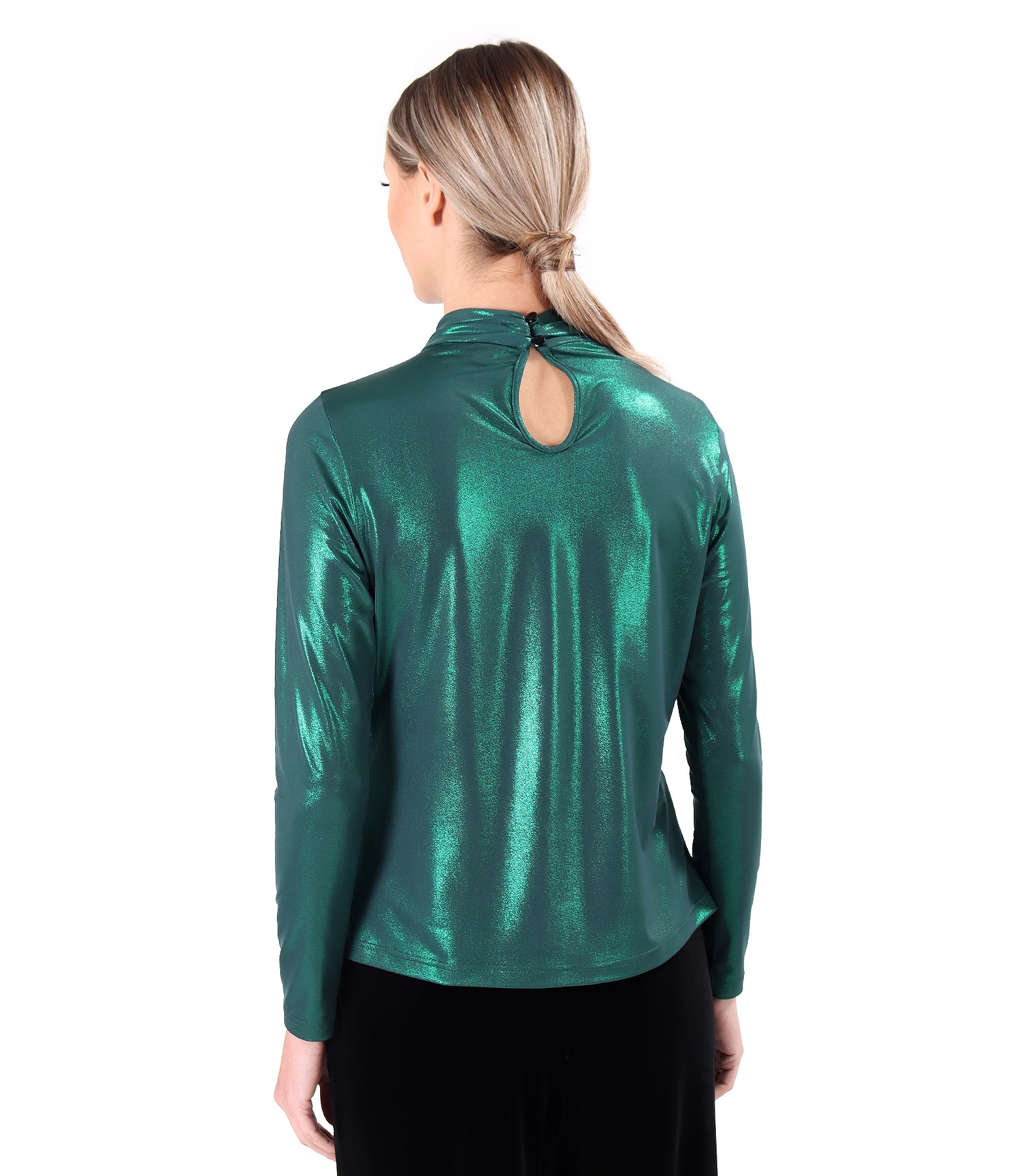 Bluza din jerse elastic cu efect lucios cu falduri la decolteu (Verde Smarald), marimea