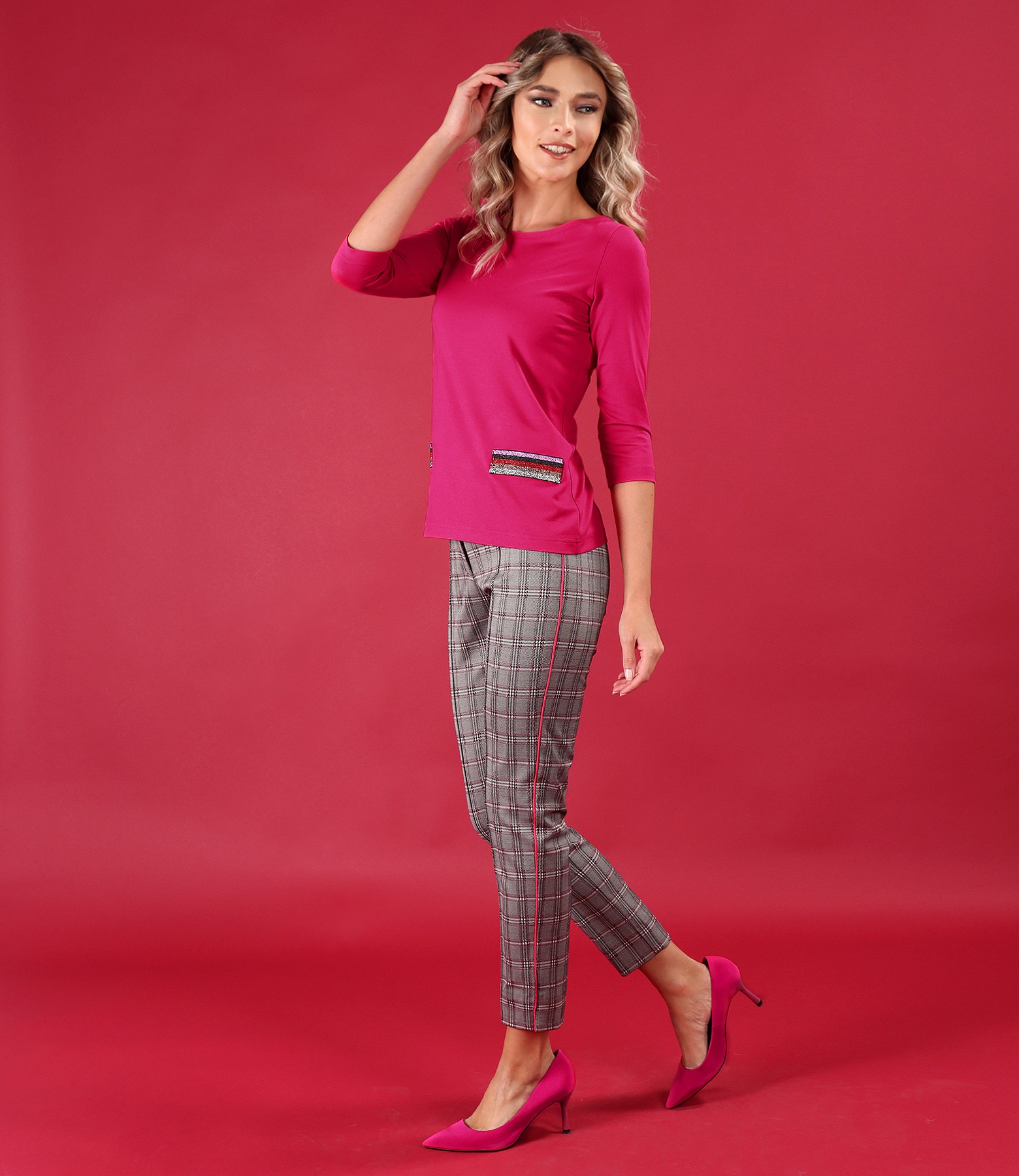 Bluza din jerse elastic cu elastic multicolor in talie (Ciclamen), marimea
