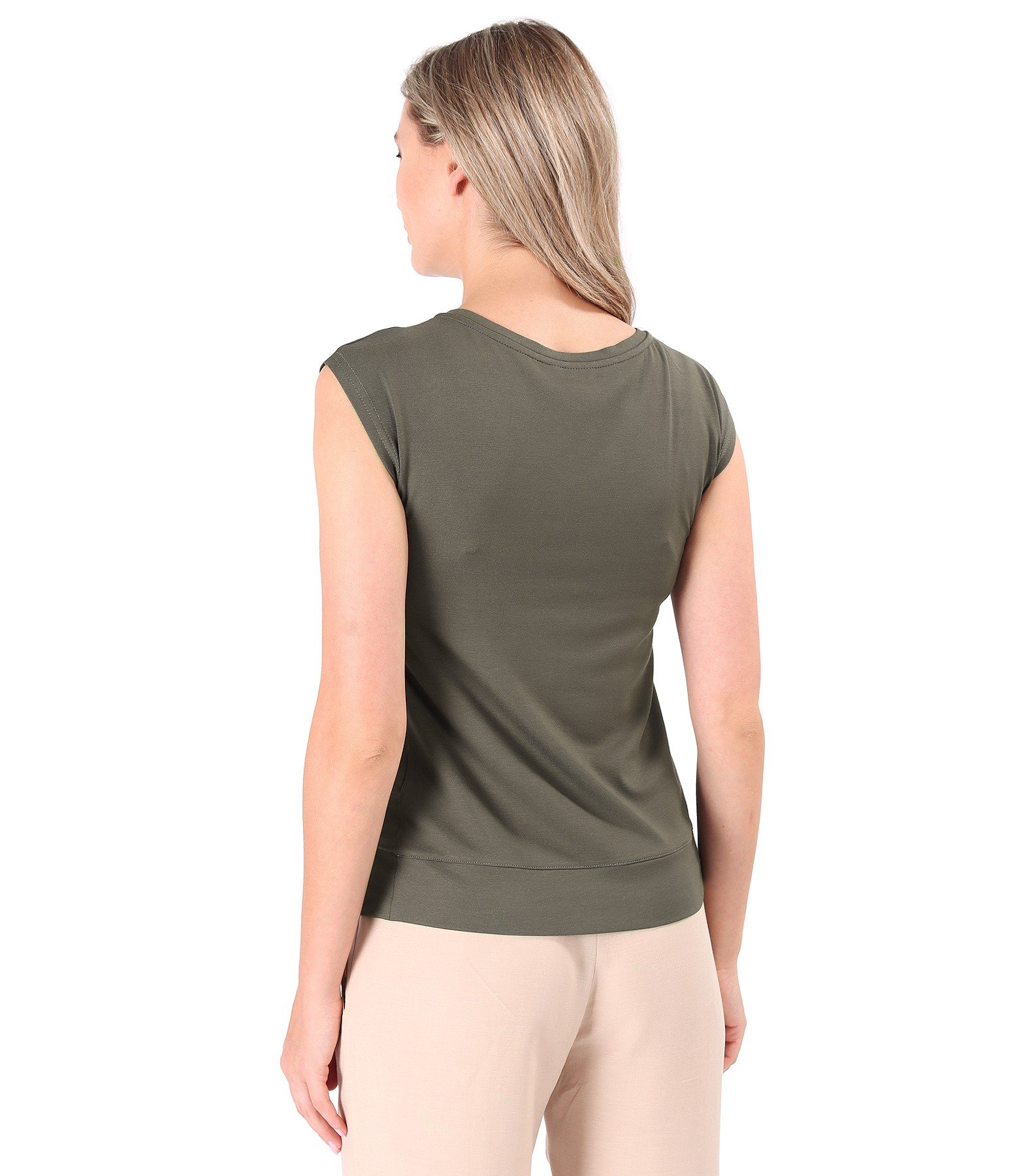 Bluza din jerse elastic cu element decorativ pe umar (Kaki), marimea