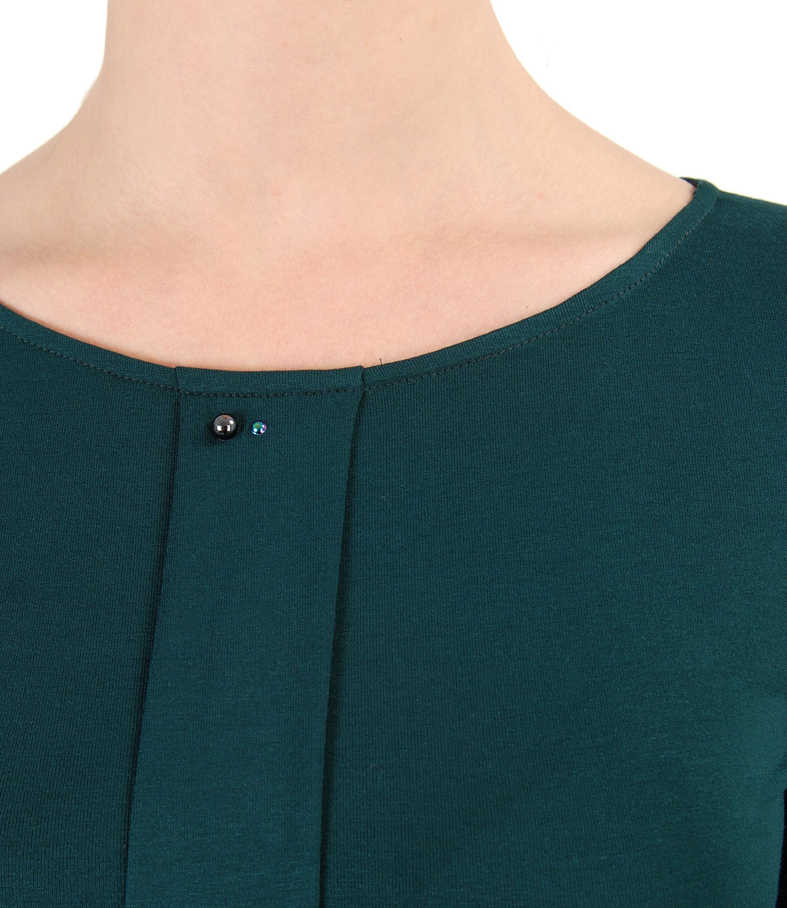 Bluza din jerse elastic cu fald si aplicatie de cristale (Verde pin), marimea