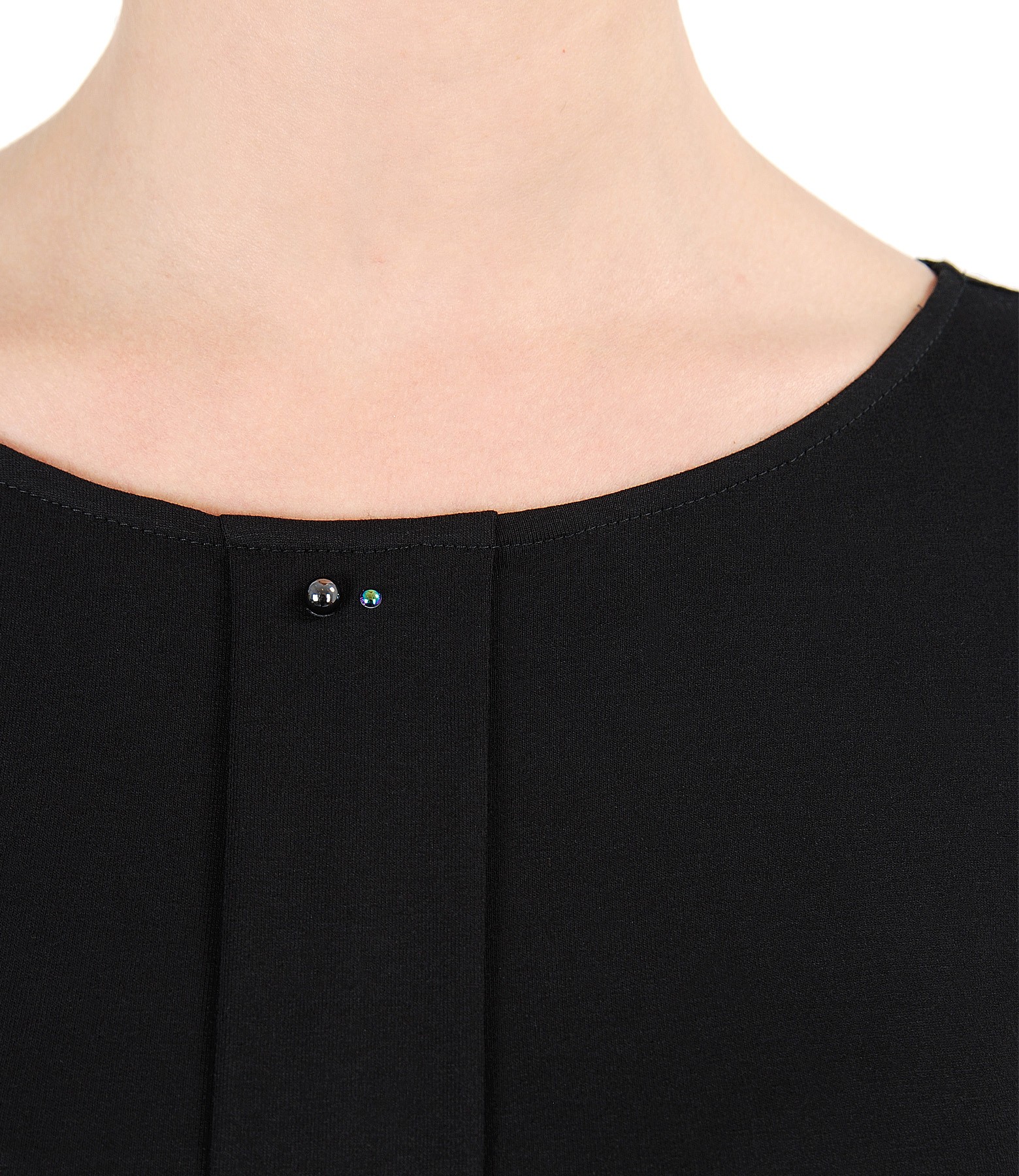 Bluza din jerse elastic cu fald si aplicatie de cristale (Negru), marimea