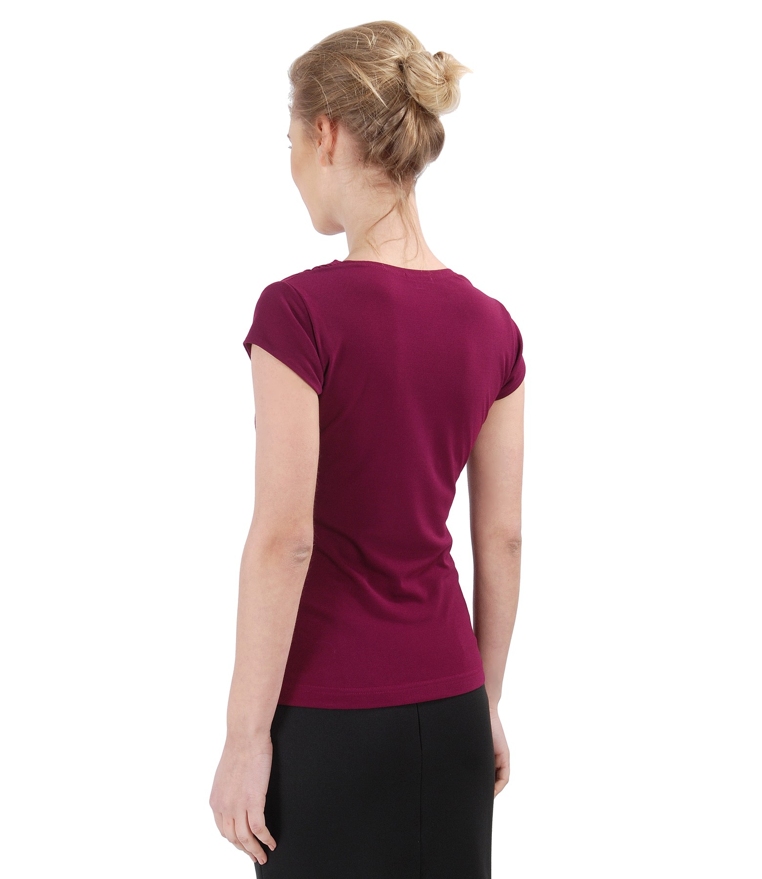 Bluza din jerse elastic, cu maneci tip aripioara, dublate, cu decolteul in falduri.