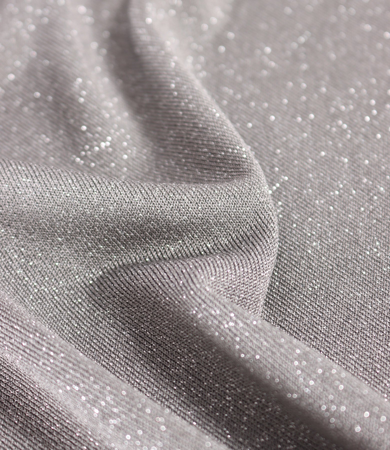 Bluza din jerse elastic cu fir metalic, cambrata, cu maneci lungi si decolteu in falduri.