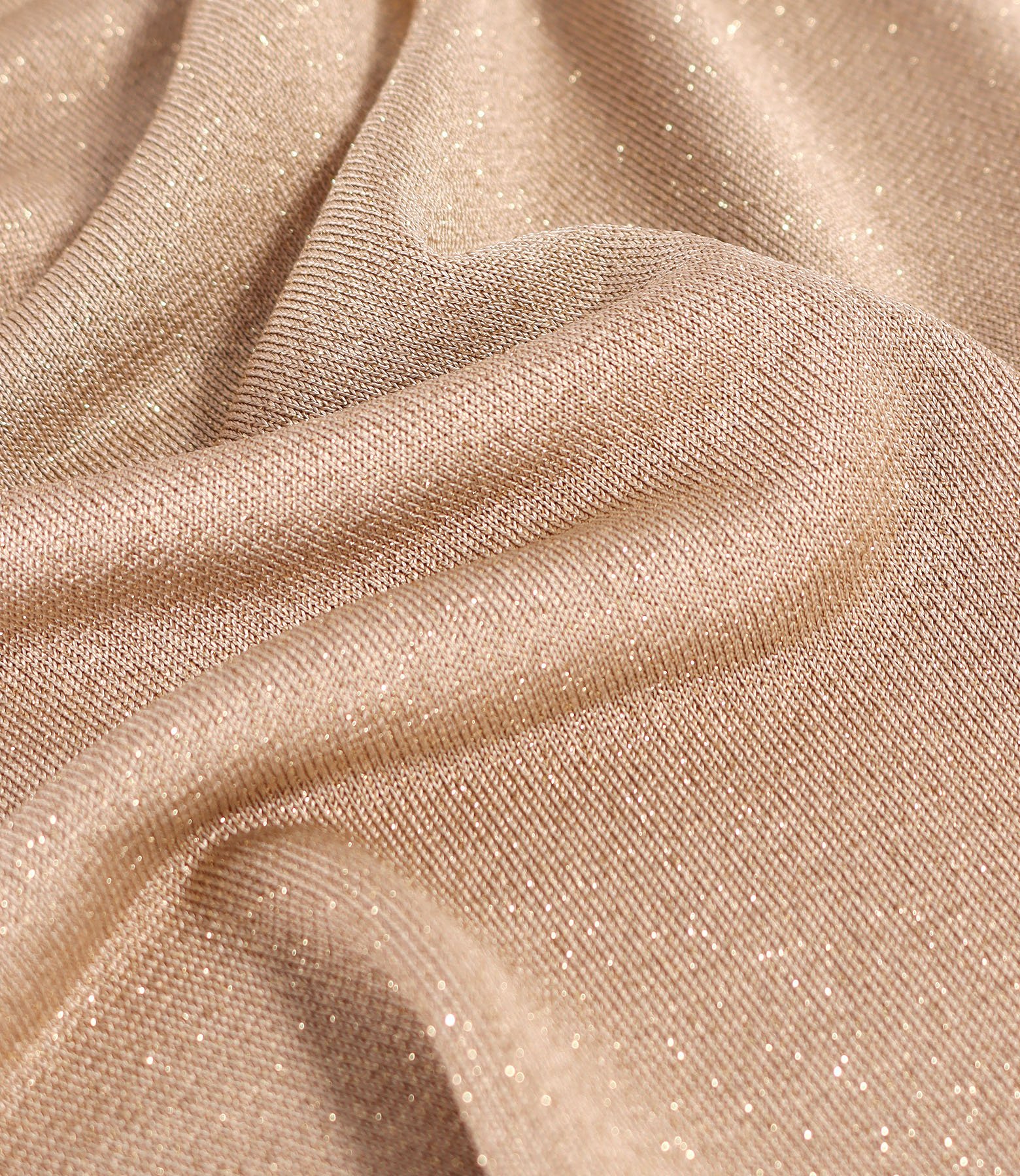 Bluza din jerse elastic cu fir metalic si cu decolteu in falduri (Bej), marimea