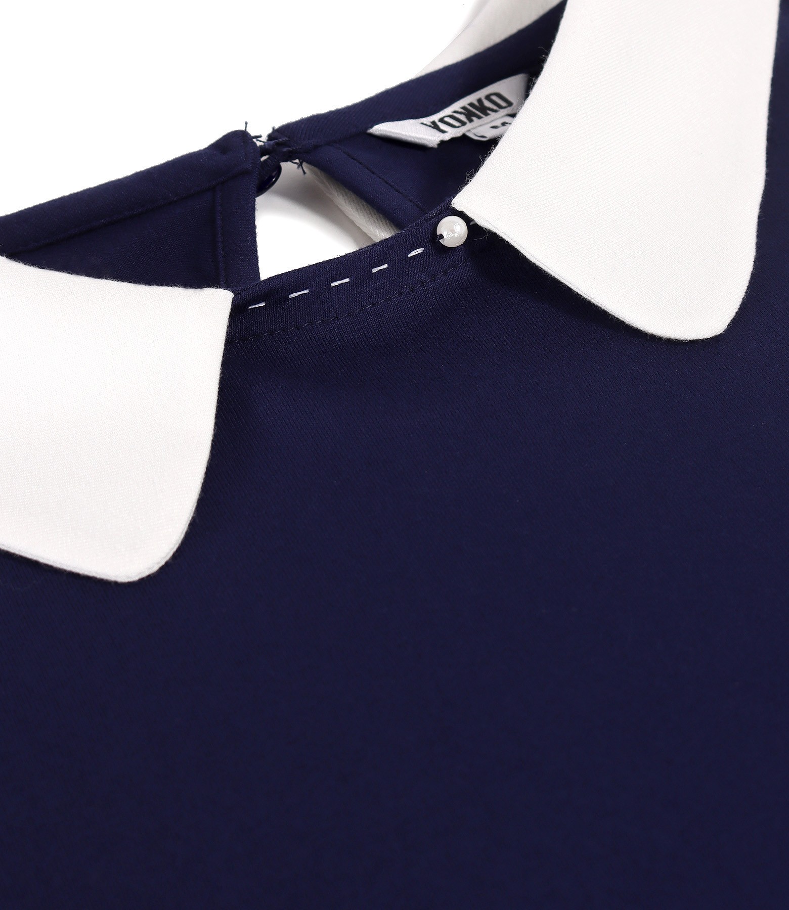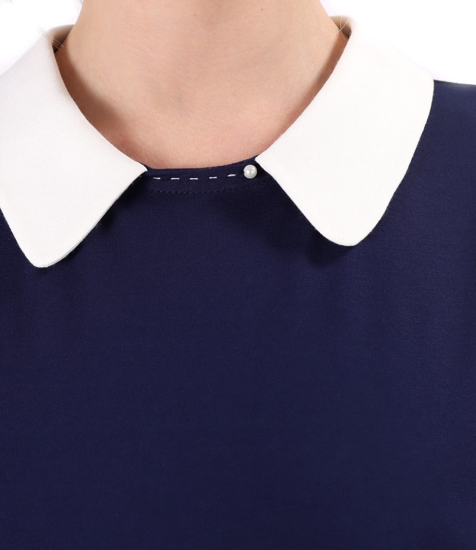 Bluza din jerse elastic cu guler alb (Bleumarin), marimea