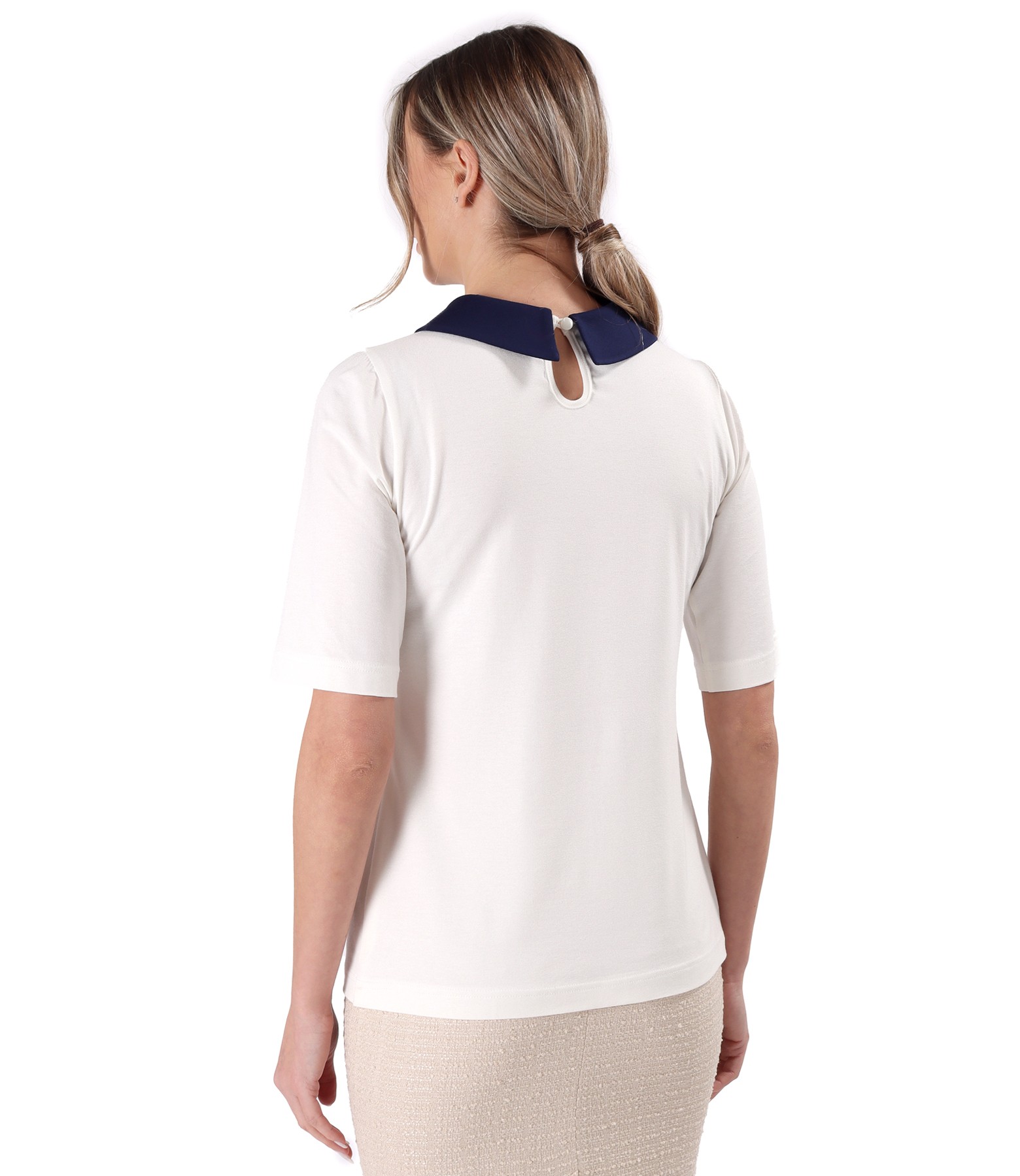 Bluza din jerse elastic cu guler bleumarin (Alb-Ecru), marimea