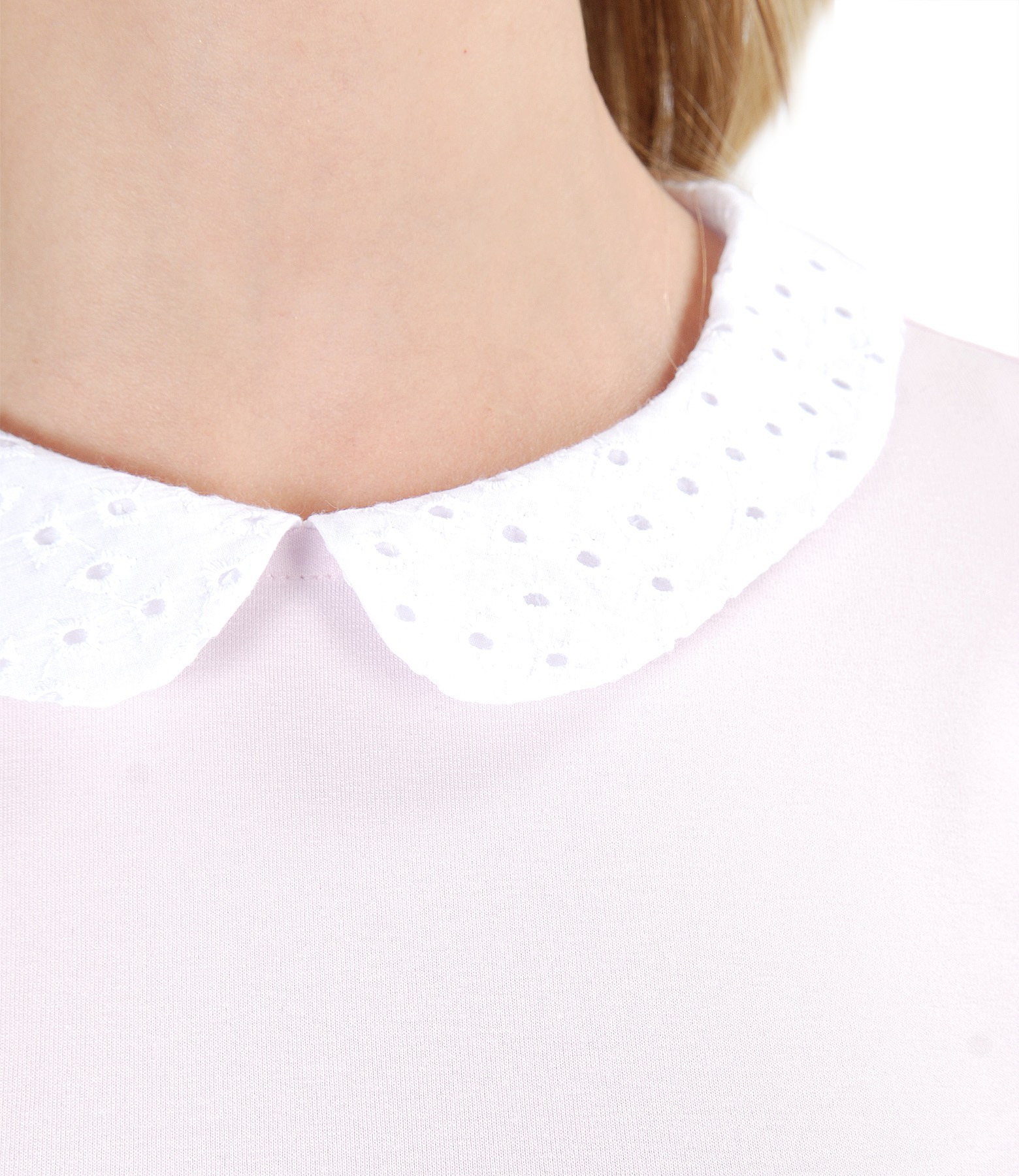 Bluza din jerse elastic cu guler din dantela sparta (Roz pal), marimea