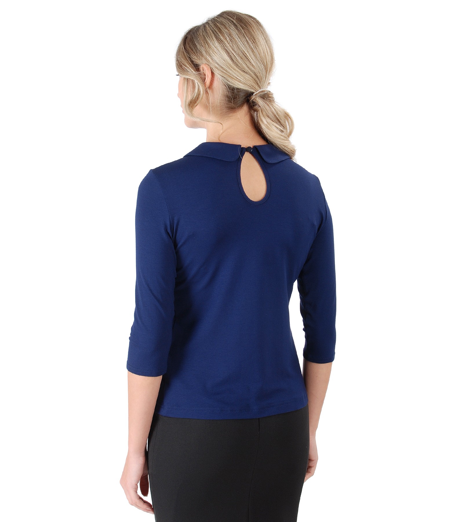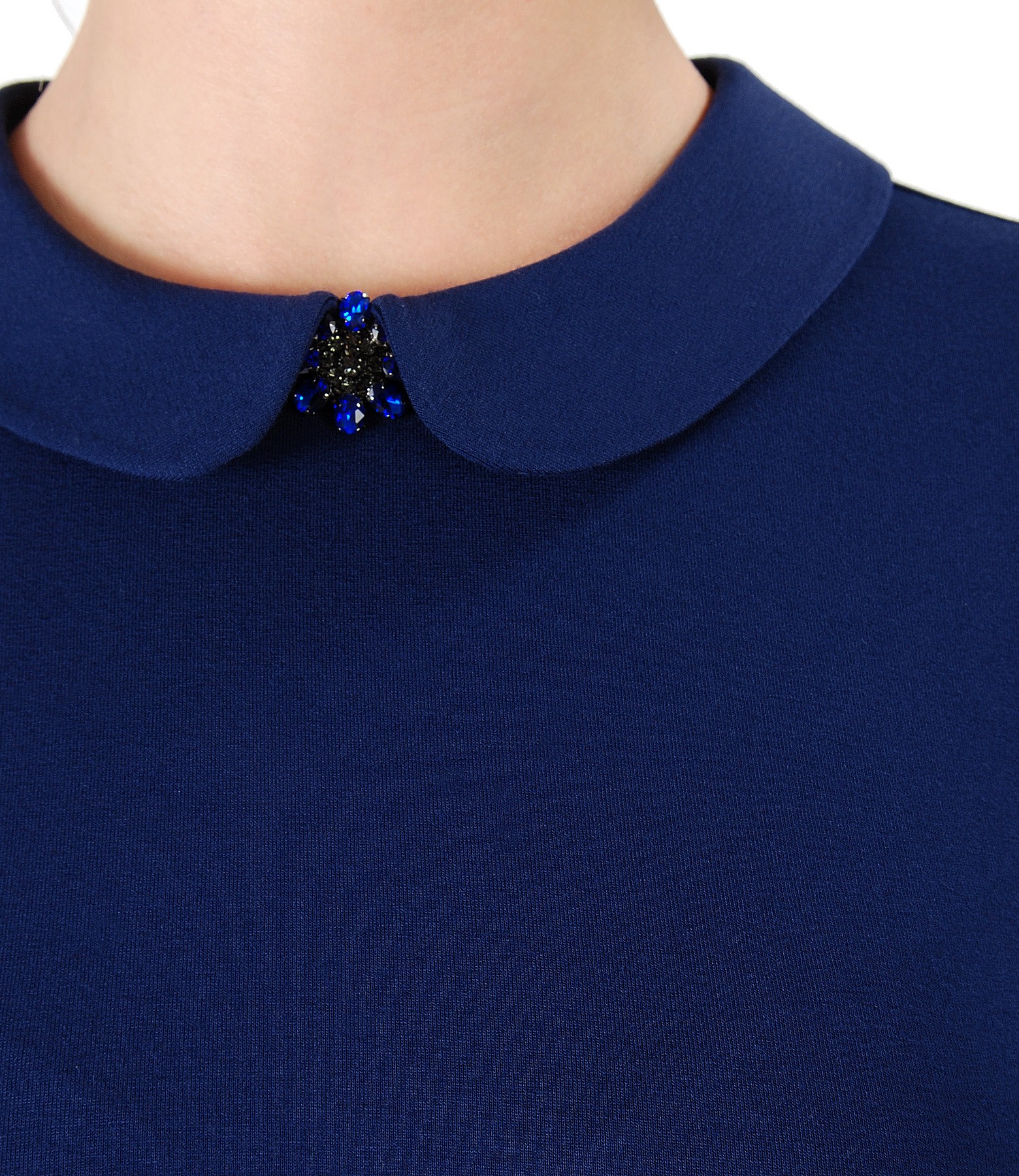 Bluza din jerse elastic cu guler rotund cu brosa (Bleumarin), marimea
