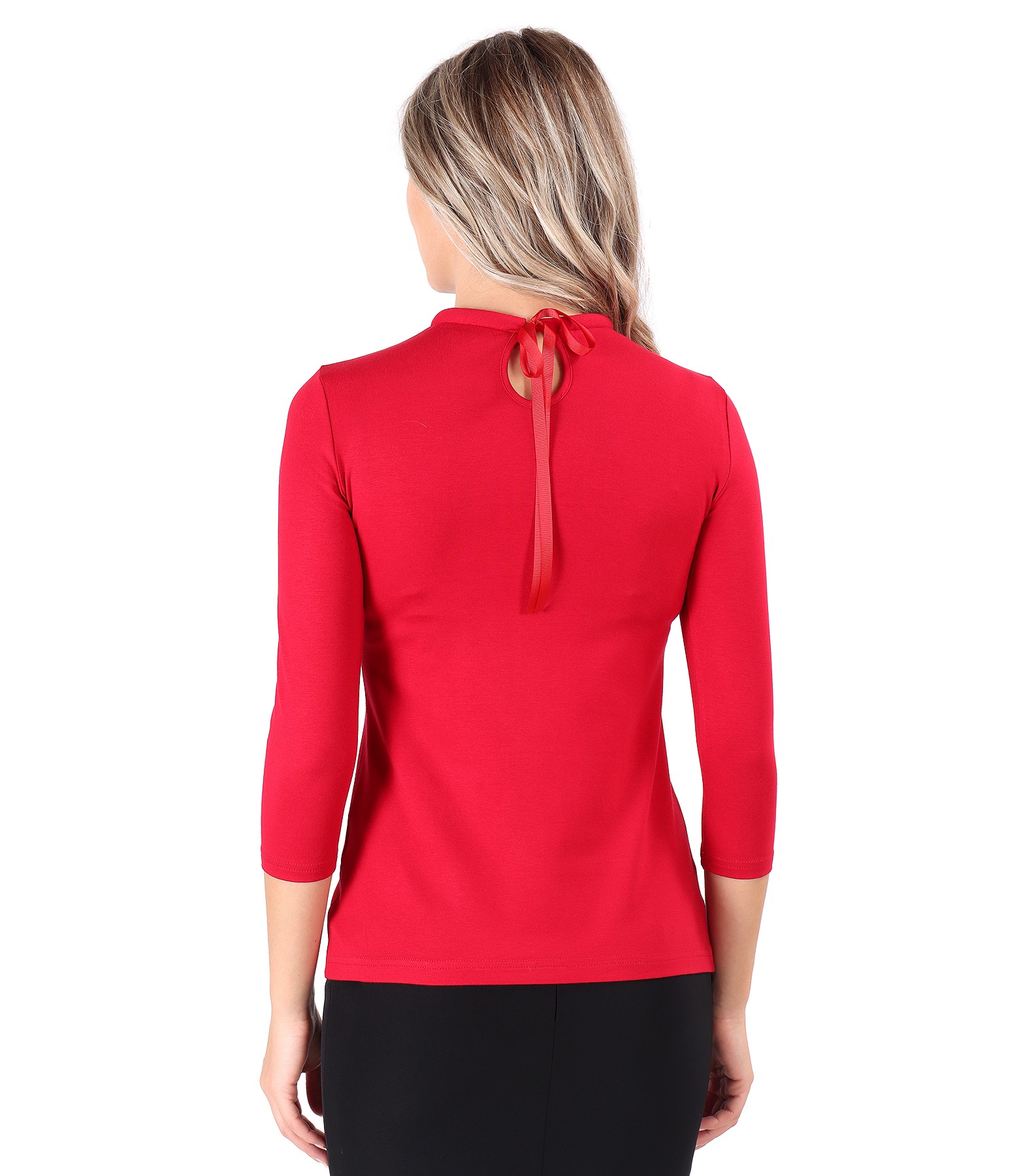 Bluza din jerse elastic cu guler rotund (Rosu Grena), marimea