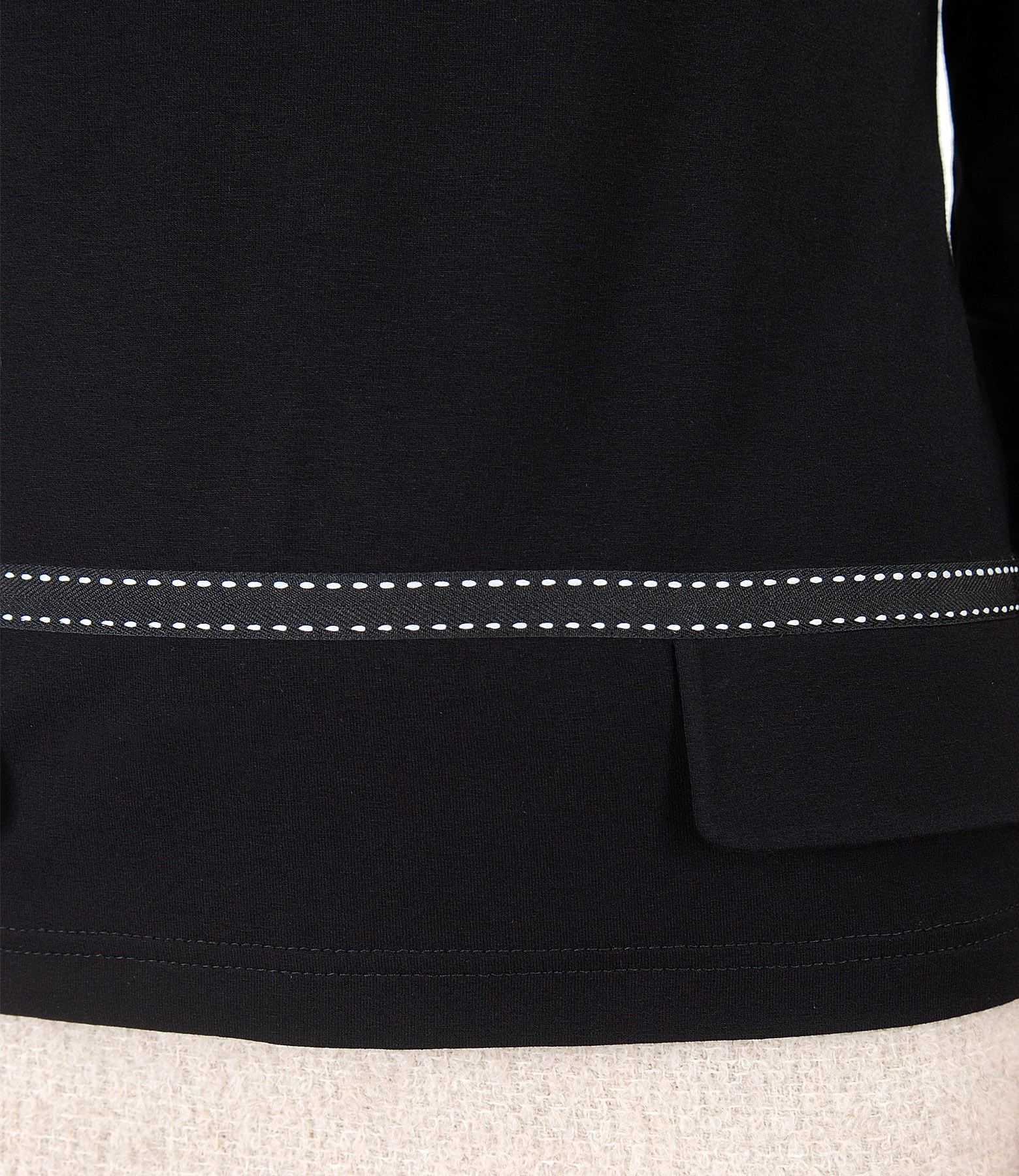 Bluza eleganta din jerse elastic uni, cu maneci 3/4 si clape decorative. Nu are sistem de inchidere.