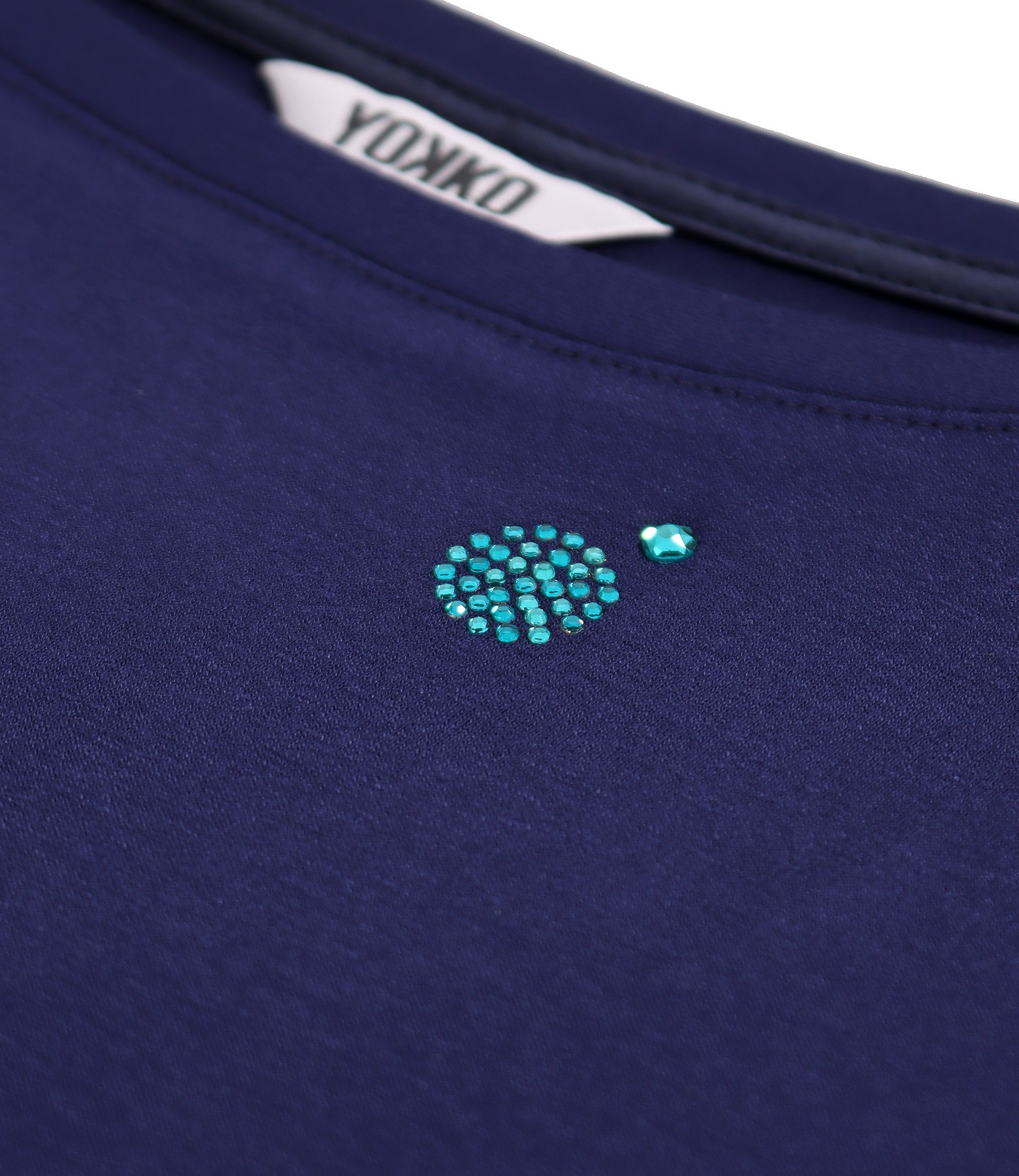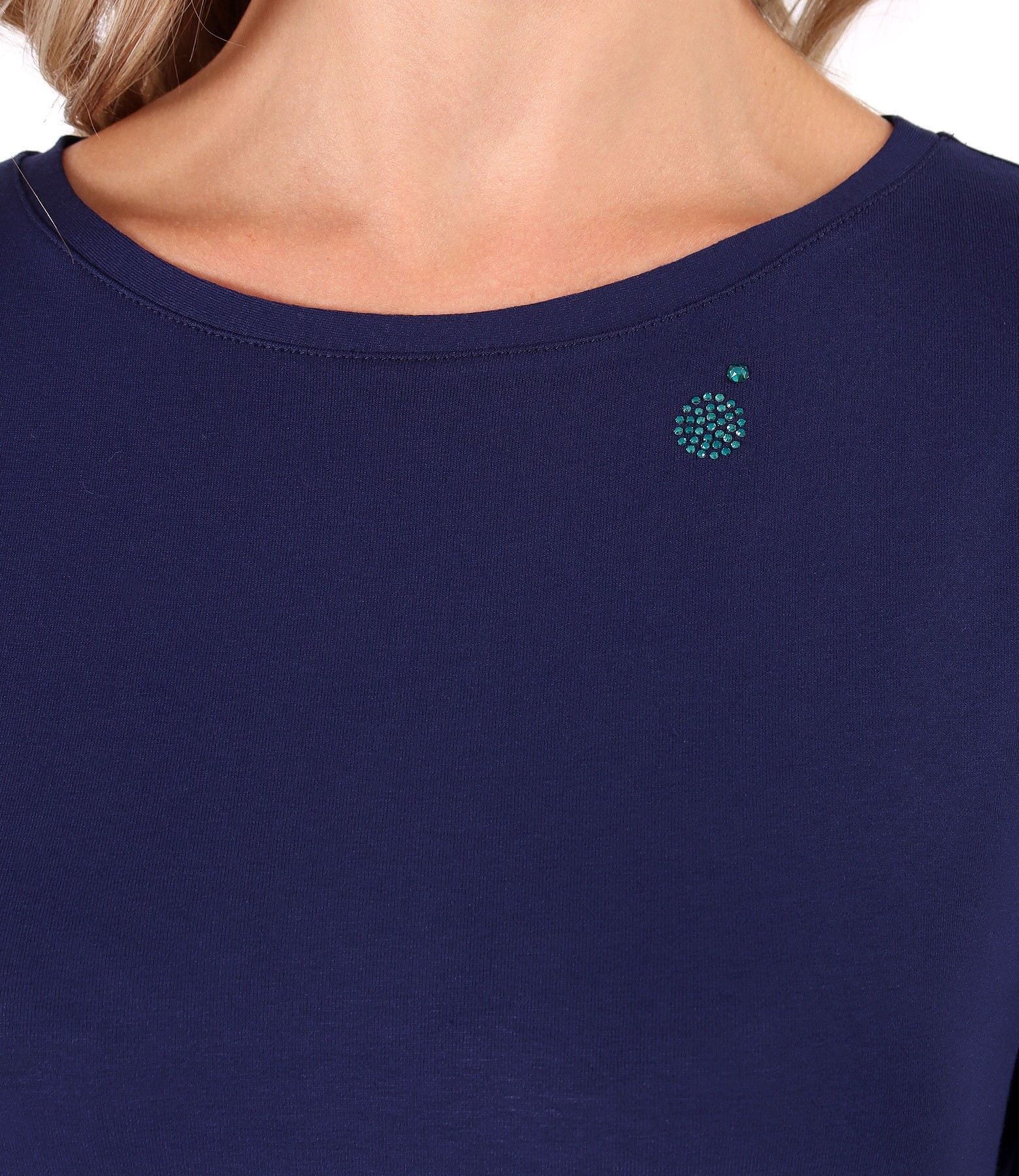 Bluza din jerse elastic cu maneci 3/4 si decolteu rotund cu aplicatie de cristale.