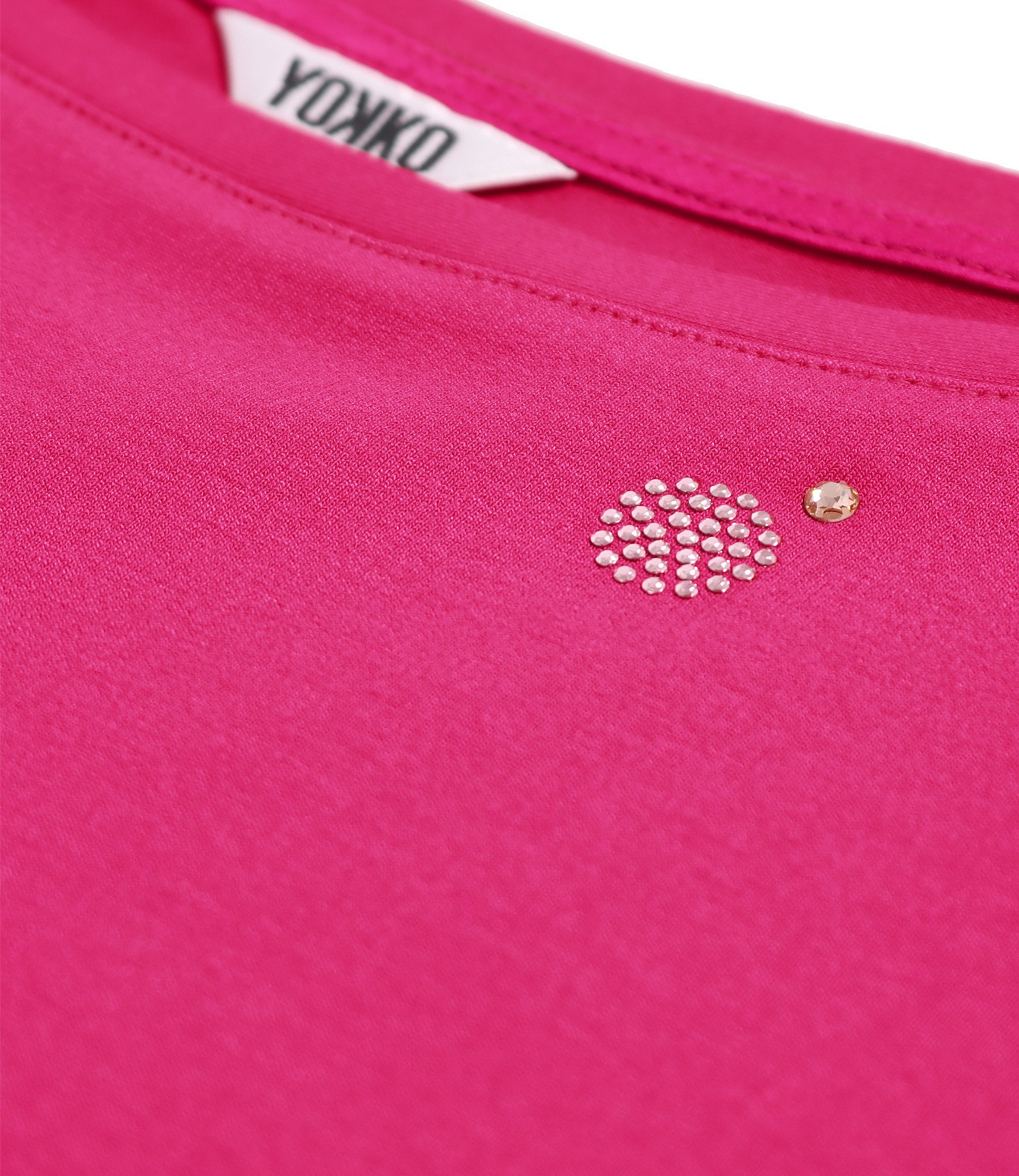 Bluza din jerse elastic cu maneci 3/4 si decolteu rotund cu aplicatie de cristale.