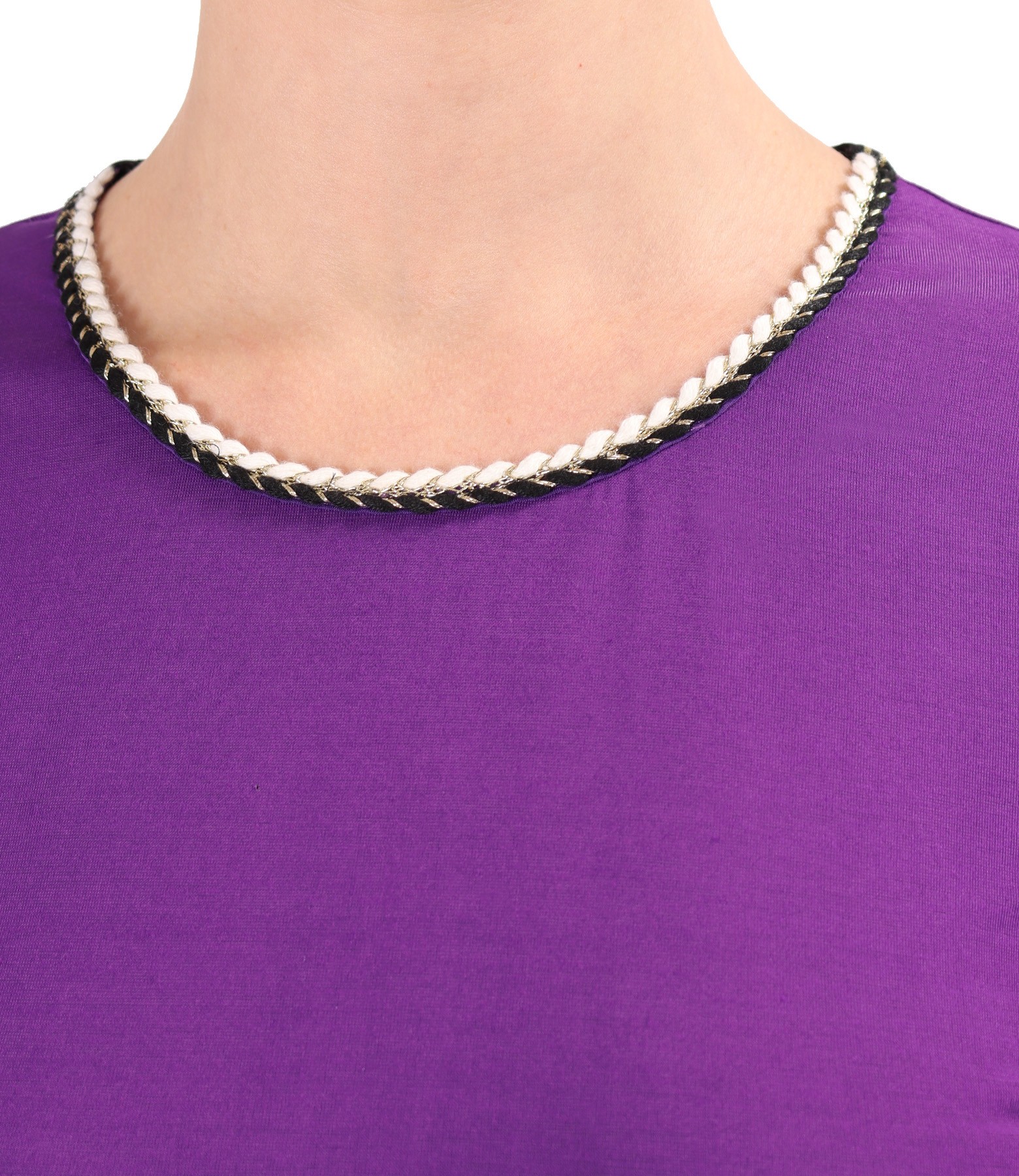 Bluza din jerse elastic cu maneci lungi ample cu mansete si cu decolteu rotund cu pasmanterie.
