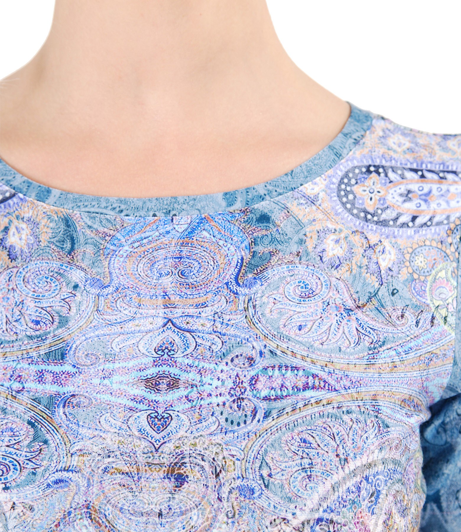 Bluza din jerse elastic imprimat digital cu motive florale, cu maneci scurte si decolteu rotund.