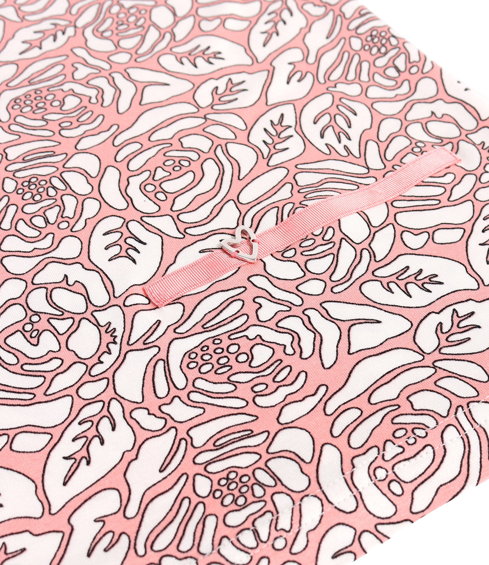 Bluza din jerse elastic de viscoza imprimat cu motive florale, cu maneci scurte, decolteu rotund si rips cu inima decorativa in talie.