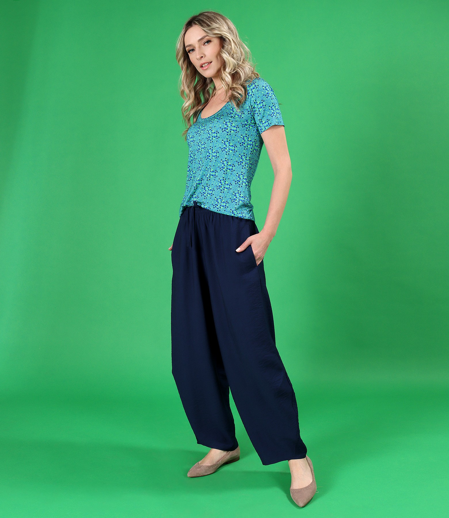 Bluza din jerse elastic de viscoza imprimat digital cu motive florale (Turcoaz), marimea