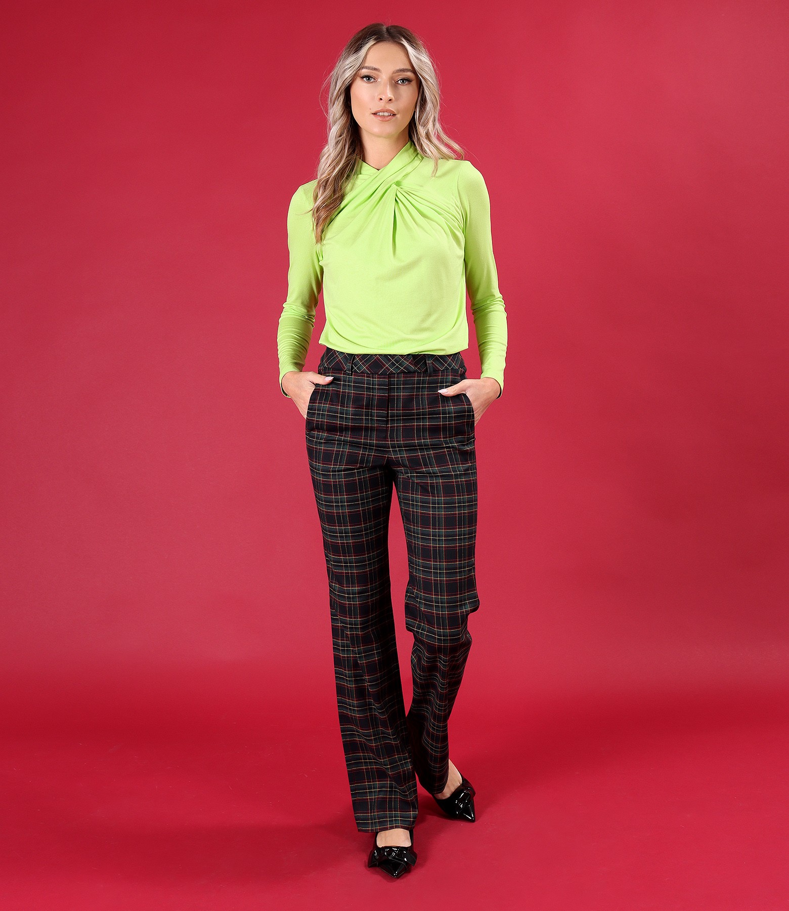 Bluza din jerse elastic din viscoza cu falduri la decolteu (Verde Neon), marimea