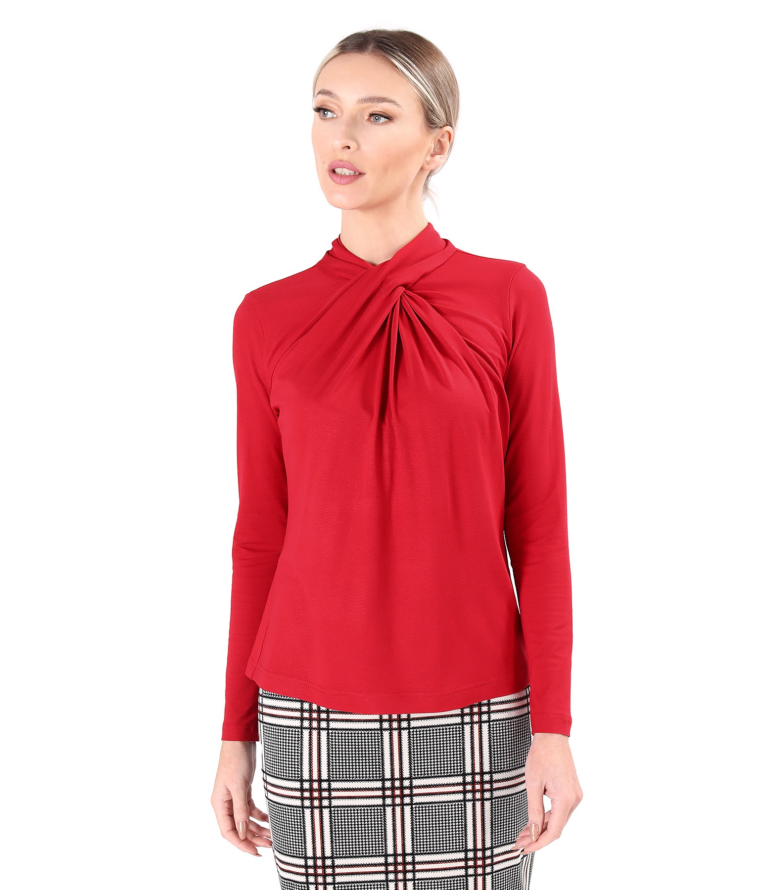Bluza din jerse elastic din viscoza cu falduri la decolteu (Rosu), marimea