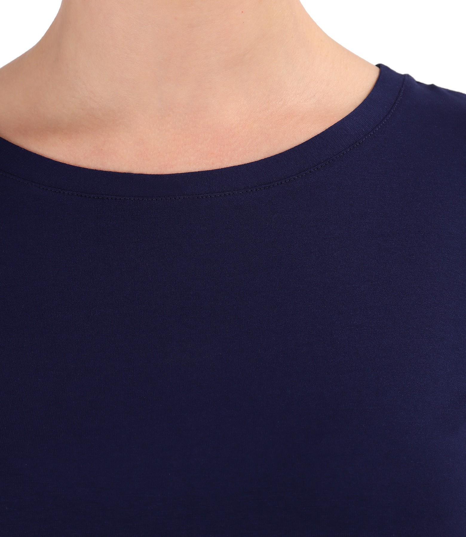 Bluza din jerse elastic fin, cu maneci 3/4, decolteu rotund si elastic auriu in talie.