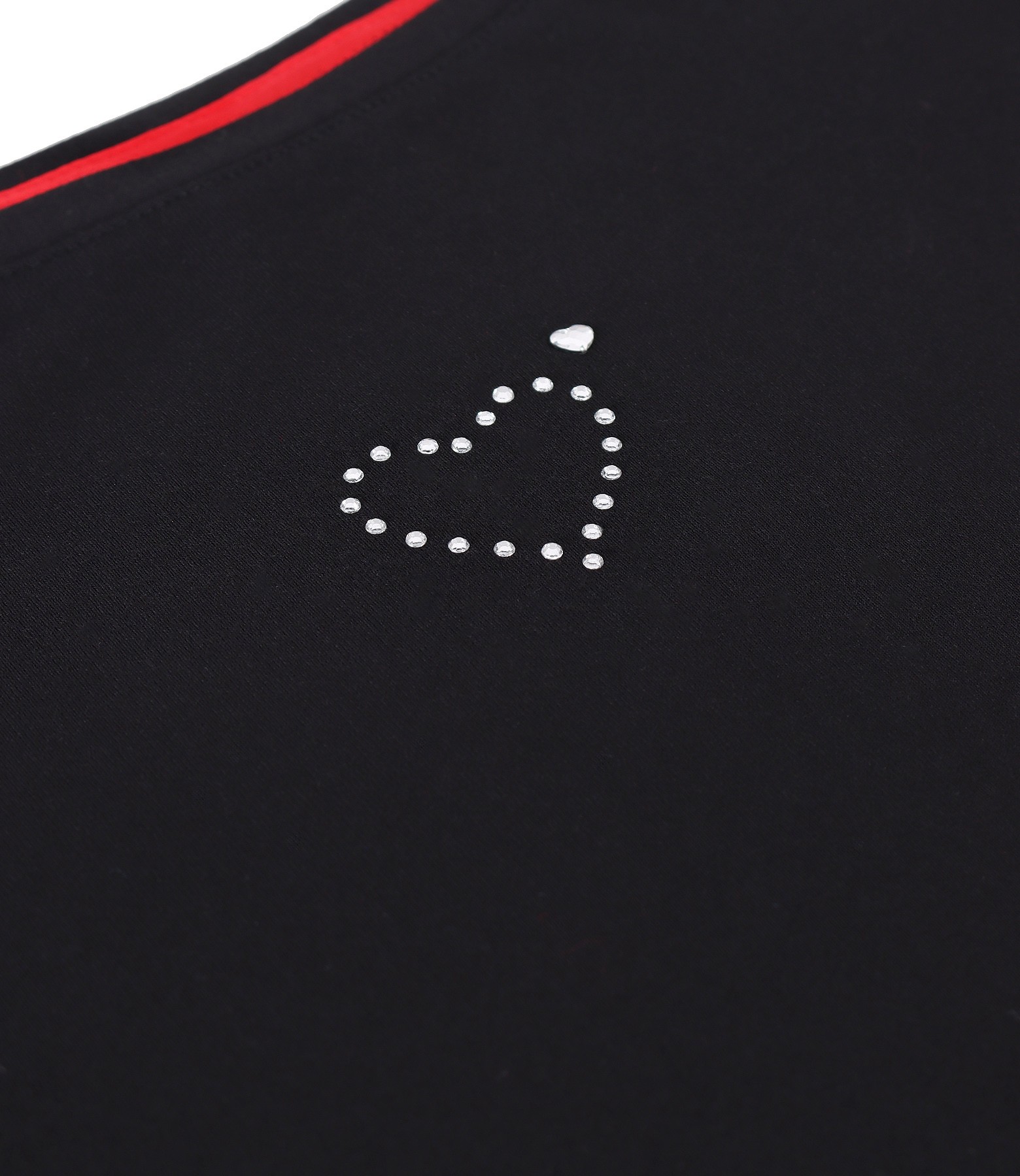 Bluza din jerse elastic fin, cu decolteu rotund, maneci scurte si aplicatie decorativa in forma de inima pe fata.