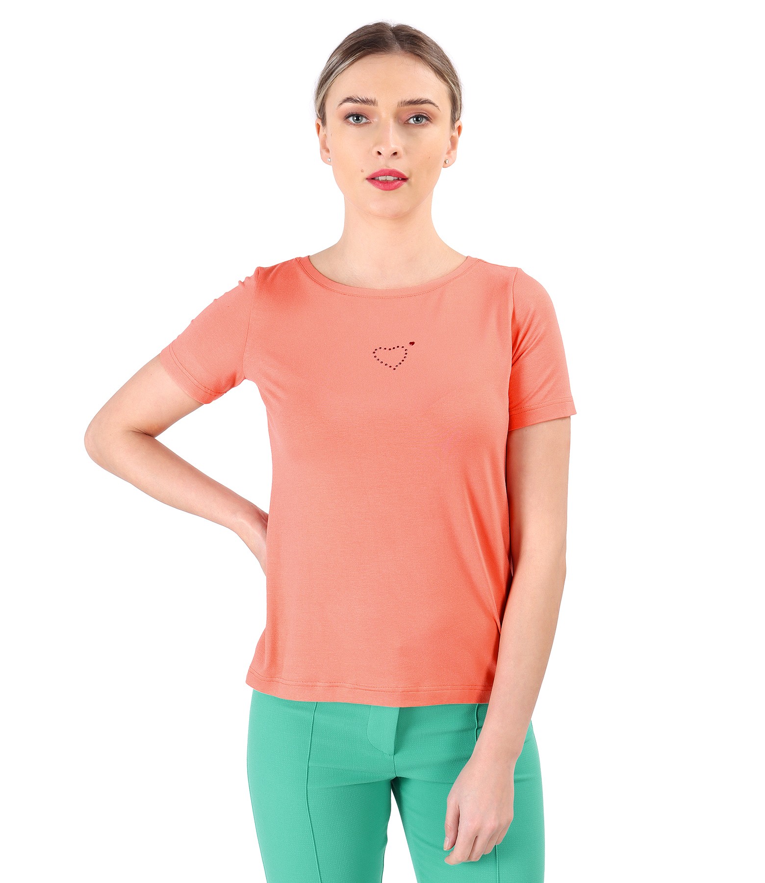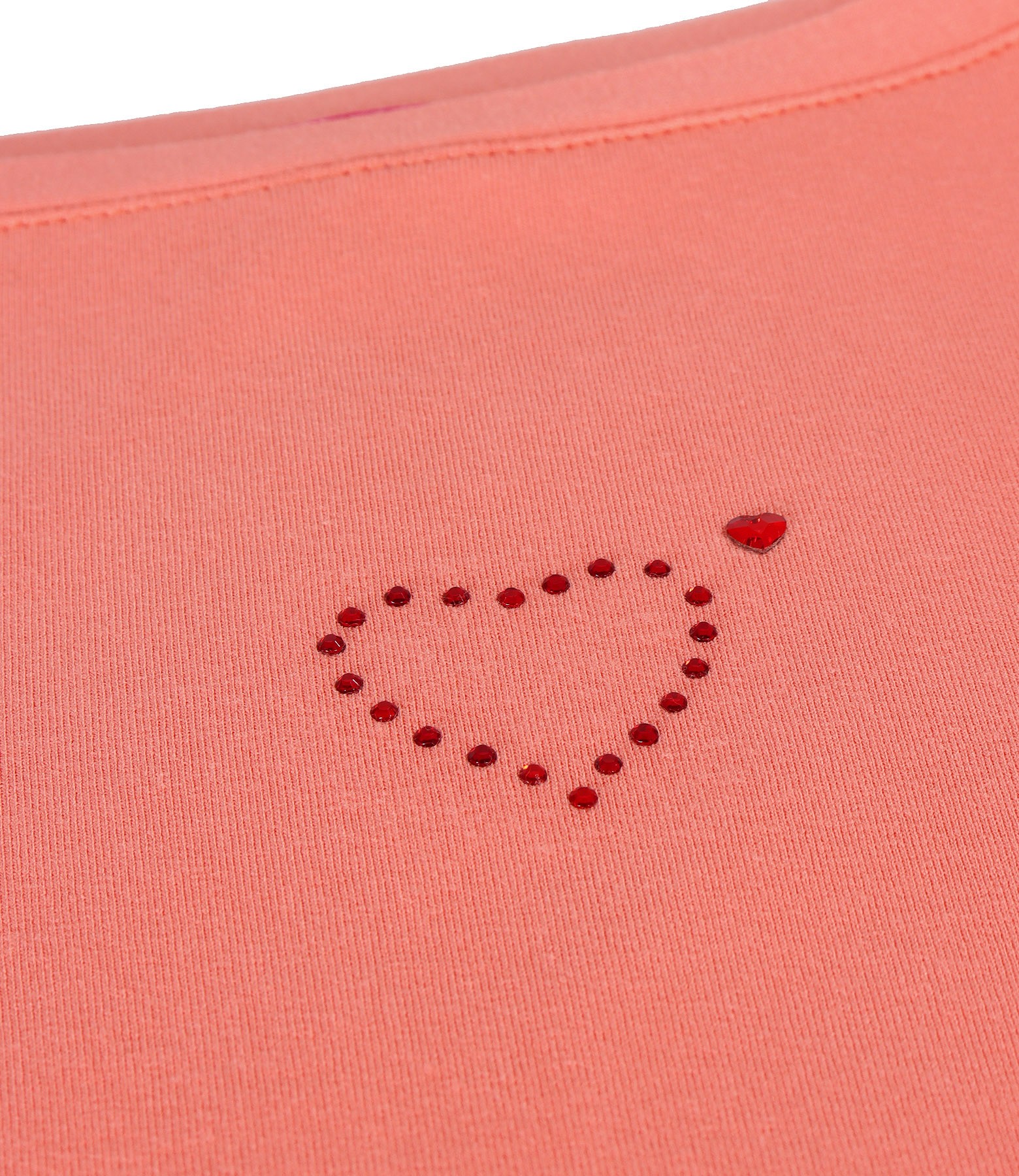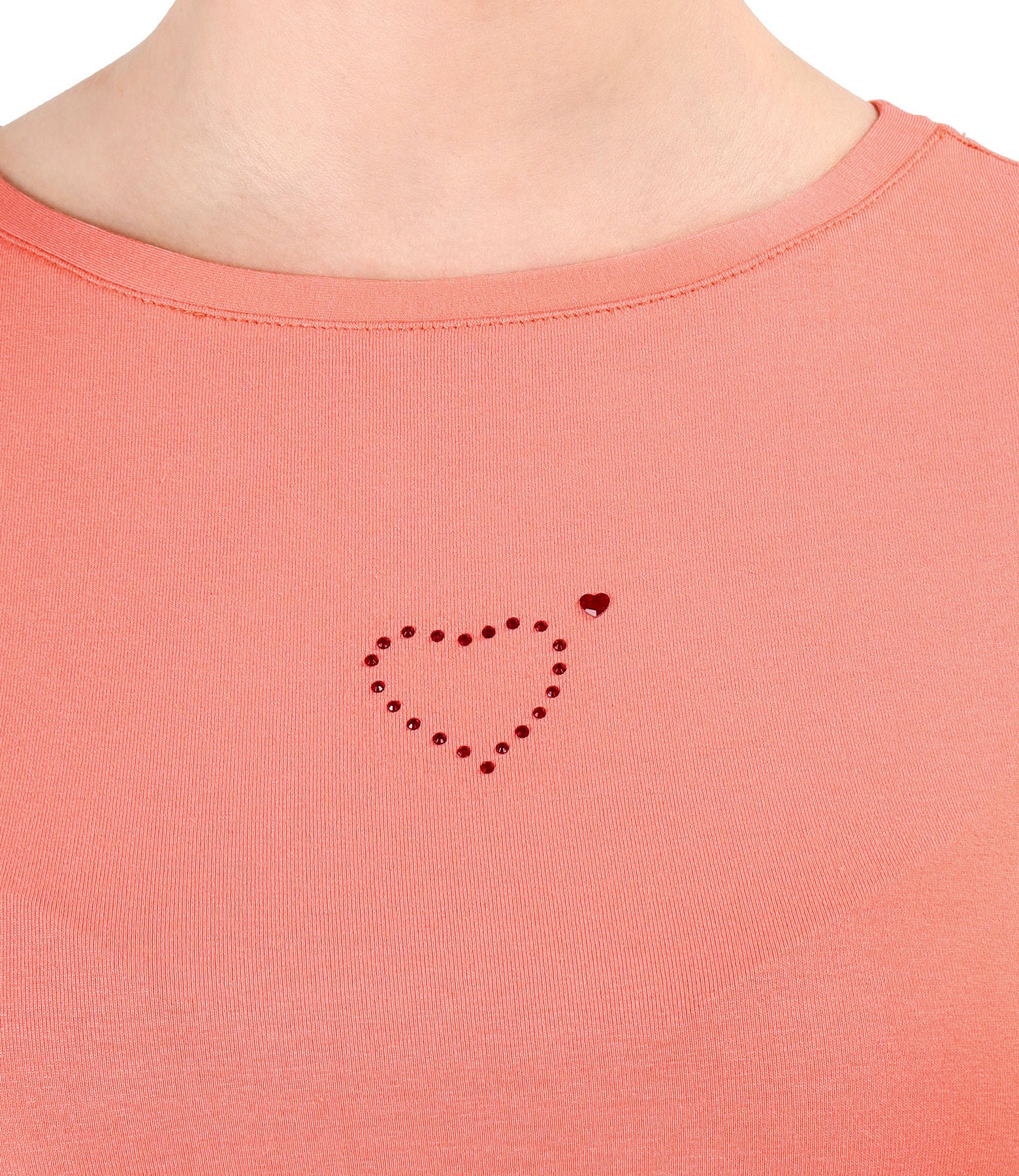 Bluza din jerse elastic fin, cu decolteu rotund, maneci scurte si aplicatie decorativa in forma de inima pe fata.