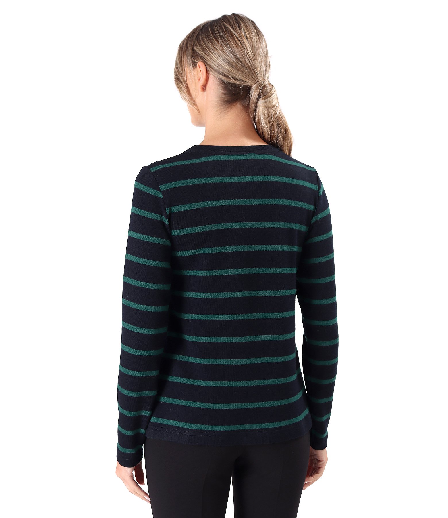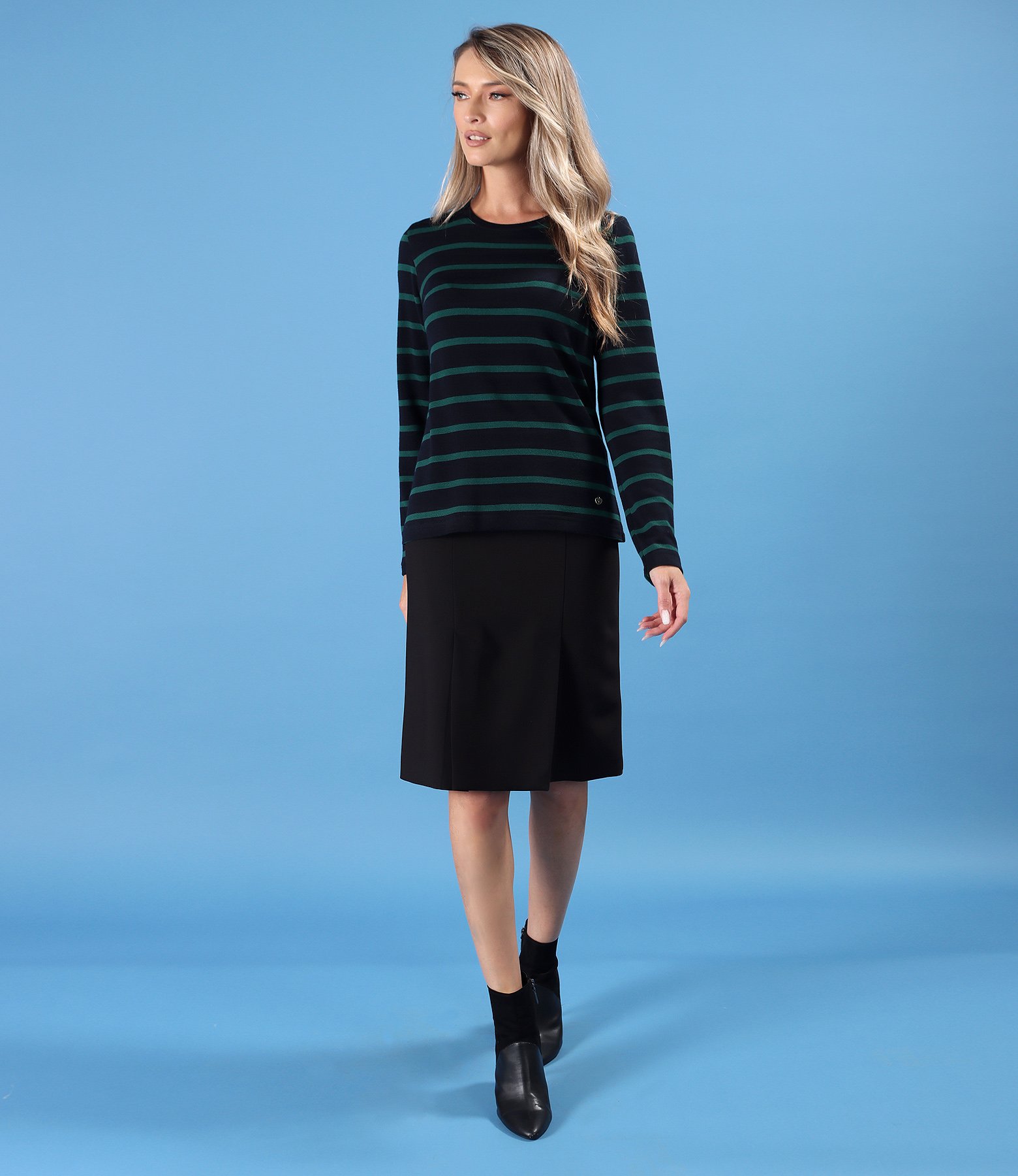 Bluza din jerse elastic gros cu lana, cu dungi, cu maneci lungi si decolteu rotund.