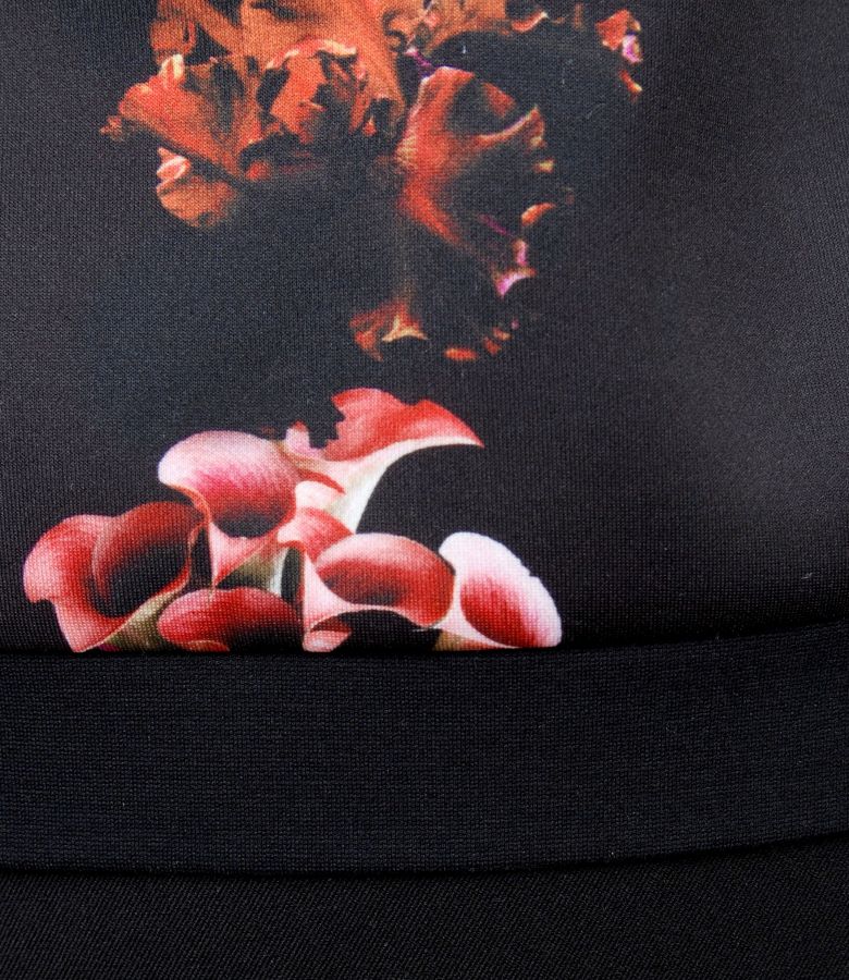 Bluza din jerse elastic gros imprimat digital, cu decolteu rotund si maneci cu garnitura elastica, bluzat la terminatie.