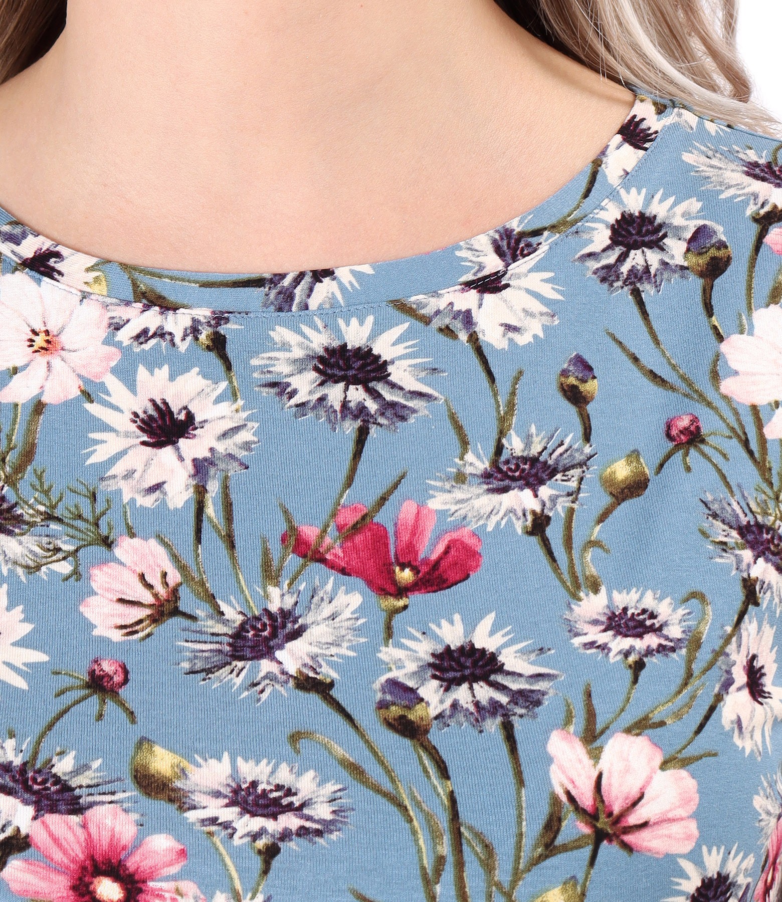 Bluza din jerse elastic imprimat cu motive florale (Albastru deschis), marimea